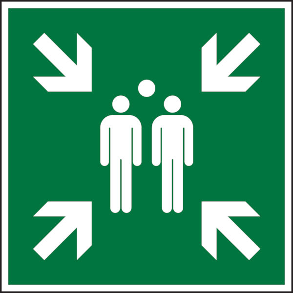 Rettungszeichen "Sammelstelle" [E007], Aluminium (2 mm), 600 x 600 x 2 mm, 55 / 8 mcd langnachleuchtend, LimarLite , ASR A1.3 / ISO 7010
