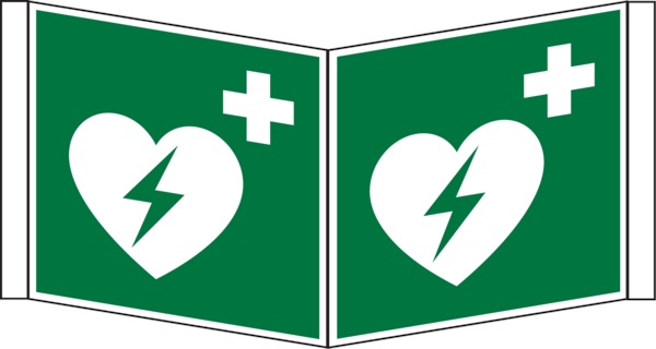 Rettungszeichen Erste Hilfe / Defibrillator (AED) ASR A1.3, ISO 7010, Kunststoff, 200 x 400 mm