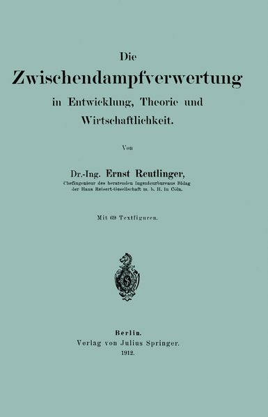 Die wischendampfverwertung in Entwicklung, Theorie und Wirtschaftlichkeit, Taschenbuch von Ernst Reutlinger, Springer Berlin, 9783642903007