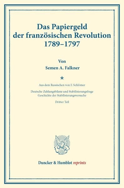 Das Papiergeld der französischen Revolution 1789–1797., Taschenbuch von Semen A. Falkner, Duncker & Humblot, 9783428174904
