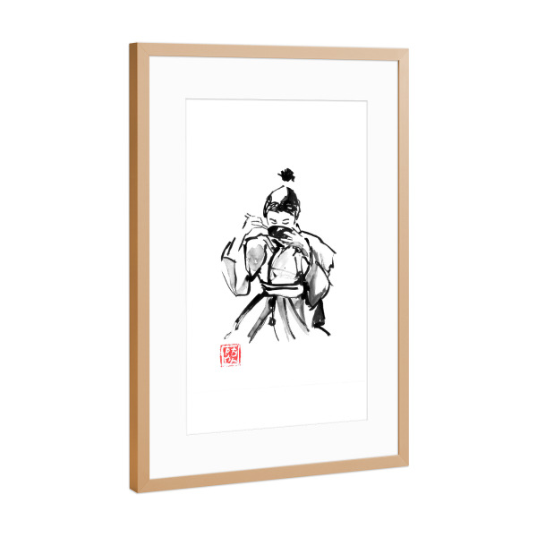 Poster mit Rahmen Kupfer "Boy eating rice" artboxONE - Schwarzweiß,Reise / Asien,Männer - Junge,Reis,Schüssel,Sumie,Japan,Schwarzweiß