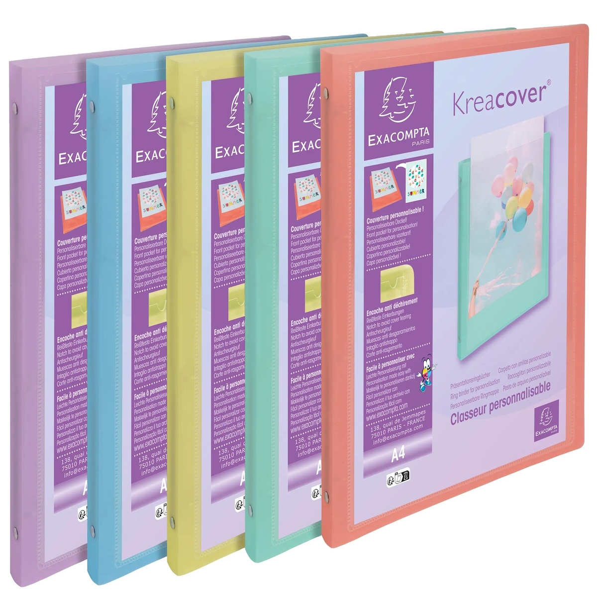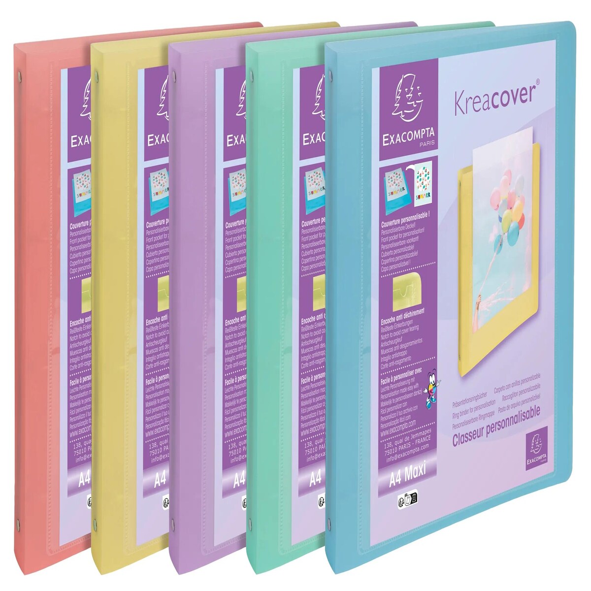 Exacompta 51279E 20x Ringbuch A4 PP, 4 Ringe 15mm, Kreacover Pastell - Farben sortiert