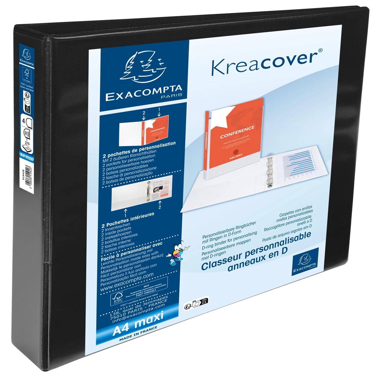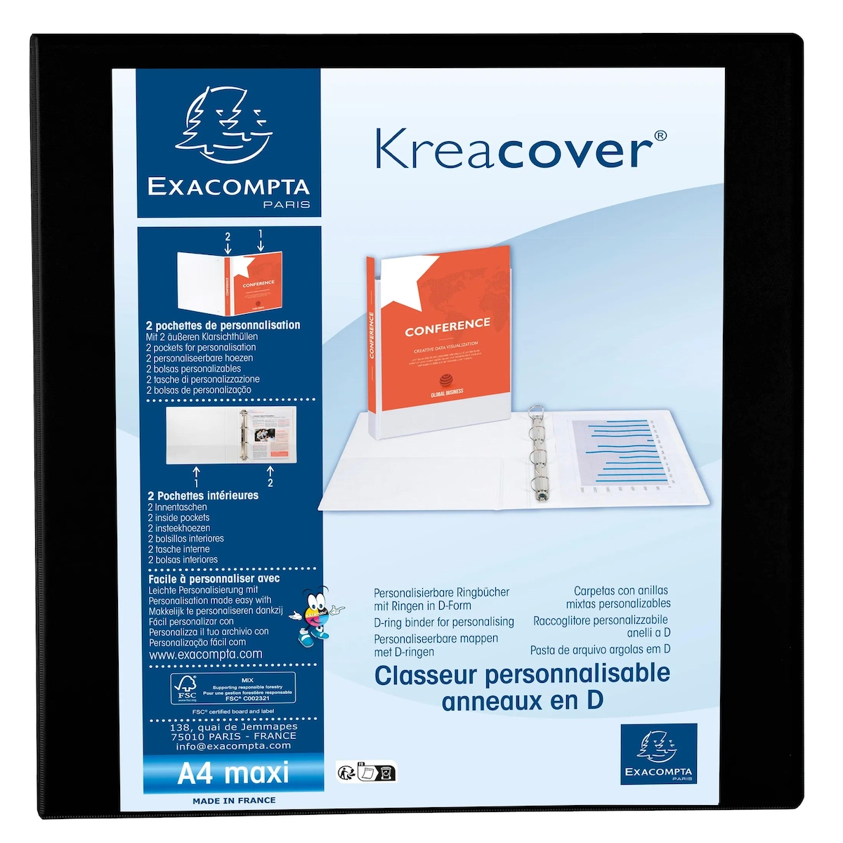 Exacompta 51842NE 10x Ringbuch, 4 Ringe 30mm Rücken 38mm Rücken, 3 Außen- und 2 Innenhüllen, 32x27,7cm für DIN A4 MAXI - Kreacover - Schwarz