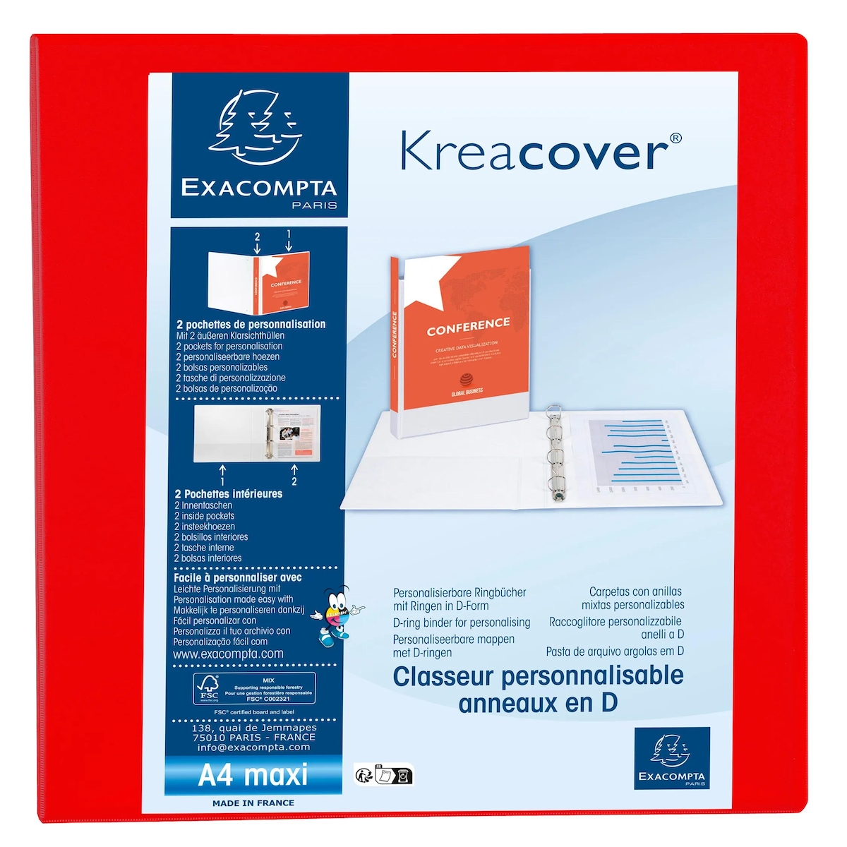 Exacompta 51843RE 10x Ringbuch, 4 Ringe 40mm Rücken 64mm, 3 Außen- und 2 Innenhüllen, 32x28,5cm für DIN A4 MAXI - Kreacover - Rot
