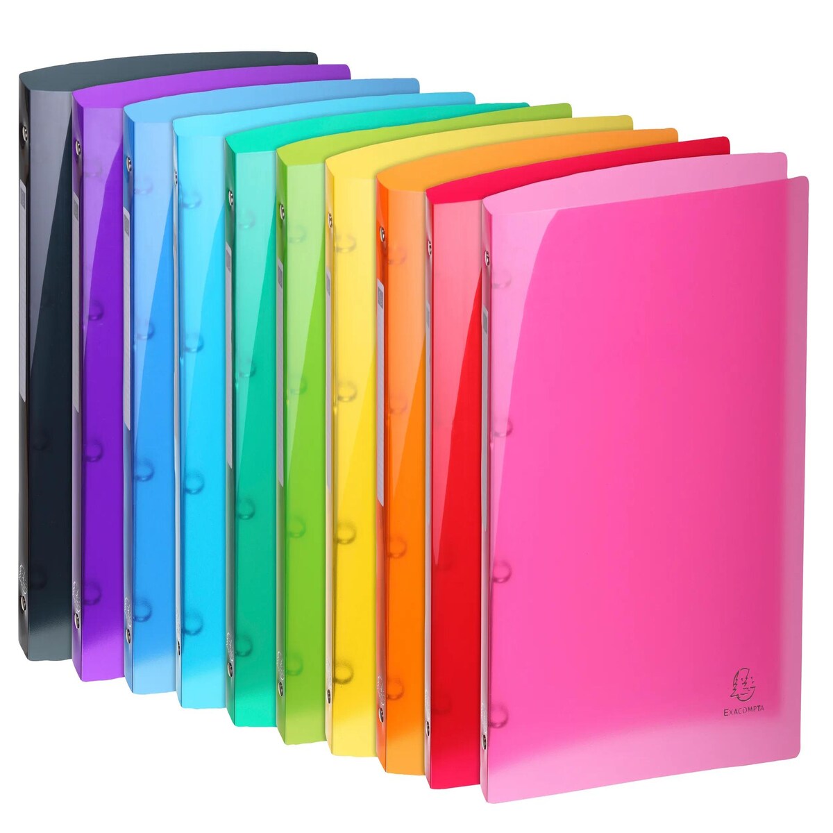 Exacompta 51830E 12x Flexibles Ringbuch A4, 4 Ringe 30mm, Recycling-PP, Titan Farben sortiert