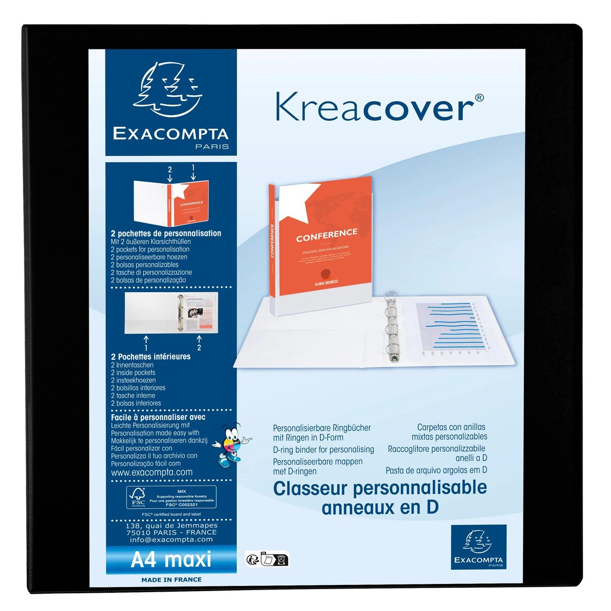EXACOMPTA Präsentations Ringbuch A4 Maxi schwarz 4D Ring Mechanik