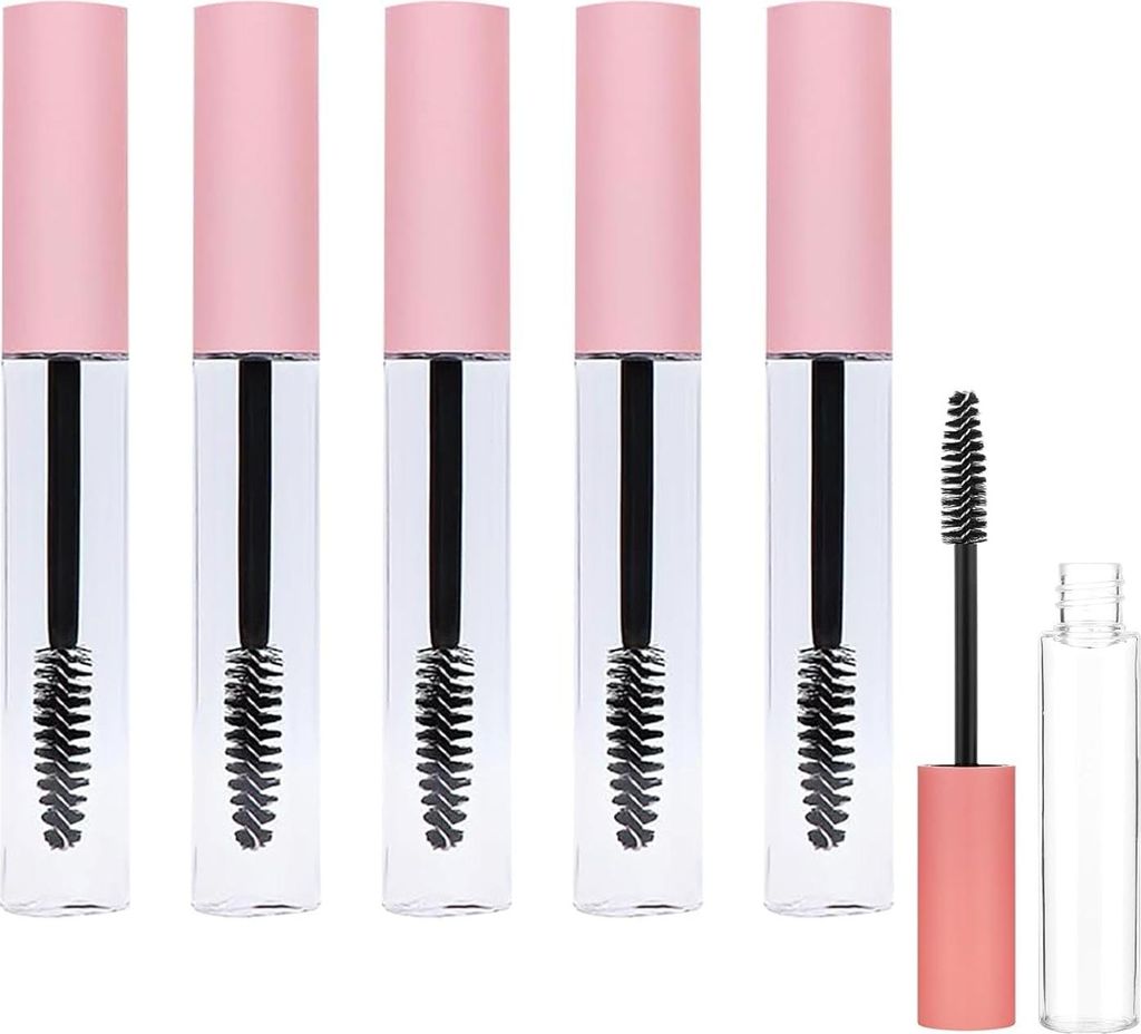 Leere Mascara-Röhrchen, 10 ml, transparente Behälter, nachfüllbar, für Rizinusöl, mit innerem Stopfen, verhindert Auslaufen, 5 Stück
