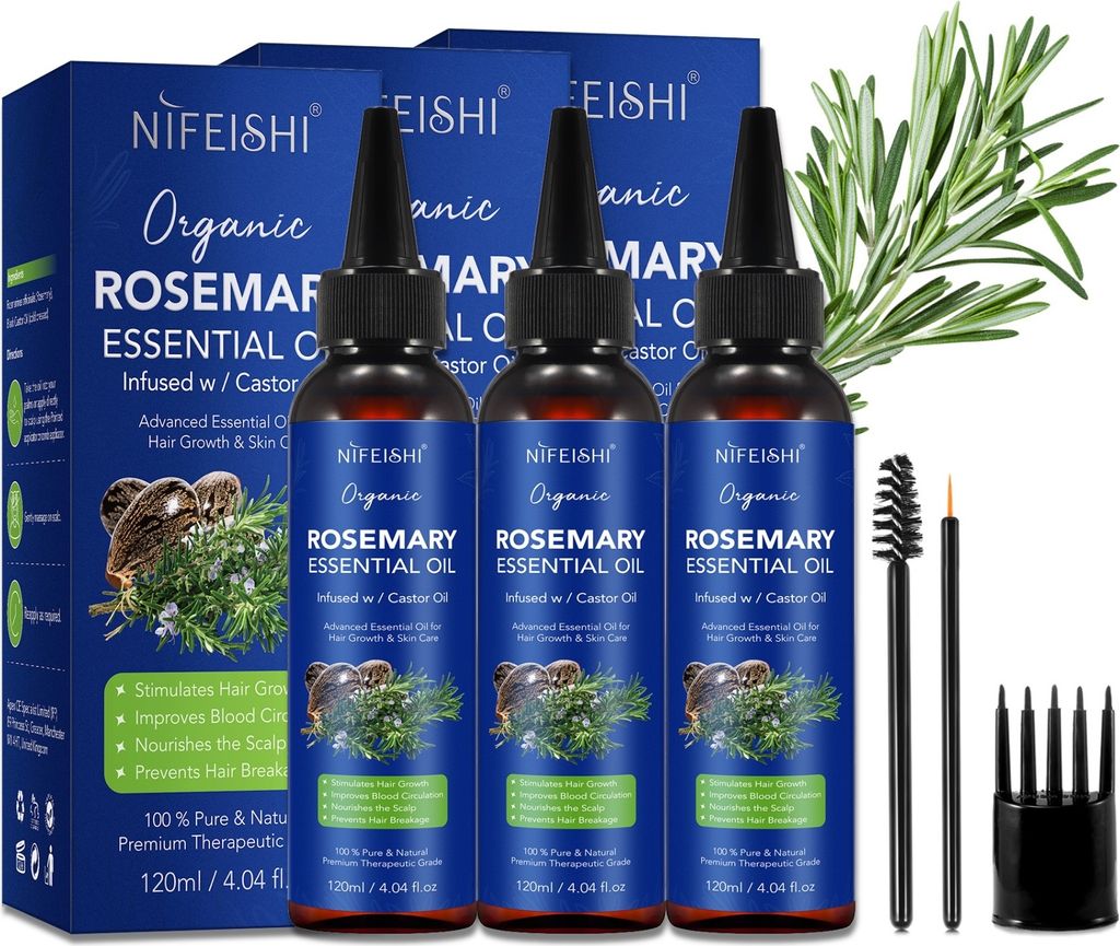 Rosmarinöl mit Rizinusöl Ätherisches Öl für Haarwachstum Kopfhaut Haarpflege Hautpflege, 3x 120ml