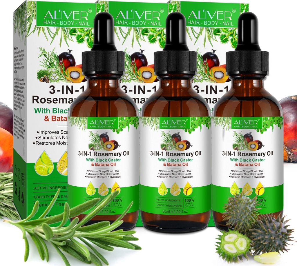 Aliver 3-in-1 Öl für Haare und Haut – Rosmarinöl & Batanaöl & Schwarzes Rizinusöl – 60 ml