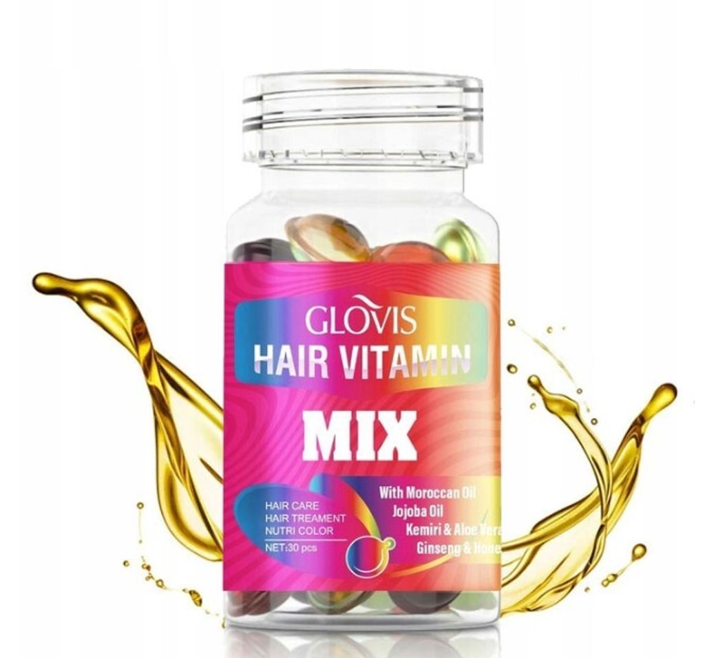 GLOVIS Hair Vitamin Oil MIX 30pcs - Vitaminölkapseln mit Olivenöl Haarserum Arganöl Rizinusöl Jojoba Gesundes glänzendes Haar
