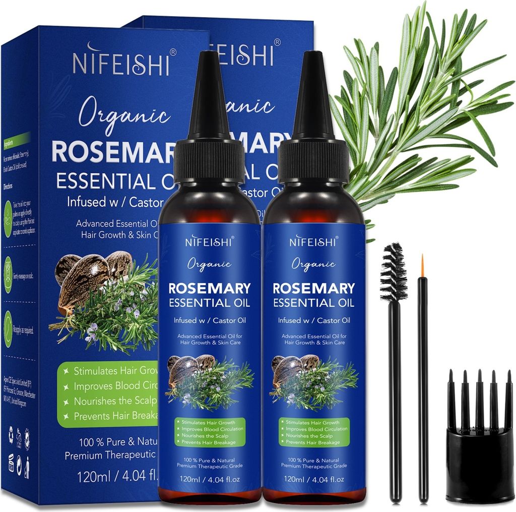 Rosmarinöl mit Rizinusöl Ätherisches Öl für Haarwachstum Kopfhaut Haarpflege Hautpflege, 2x 120ml