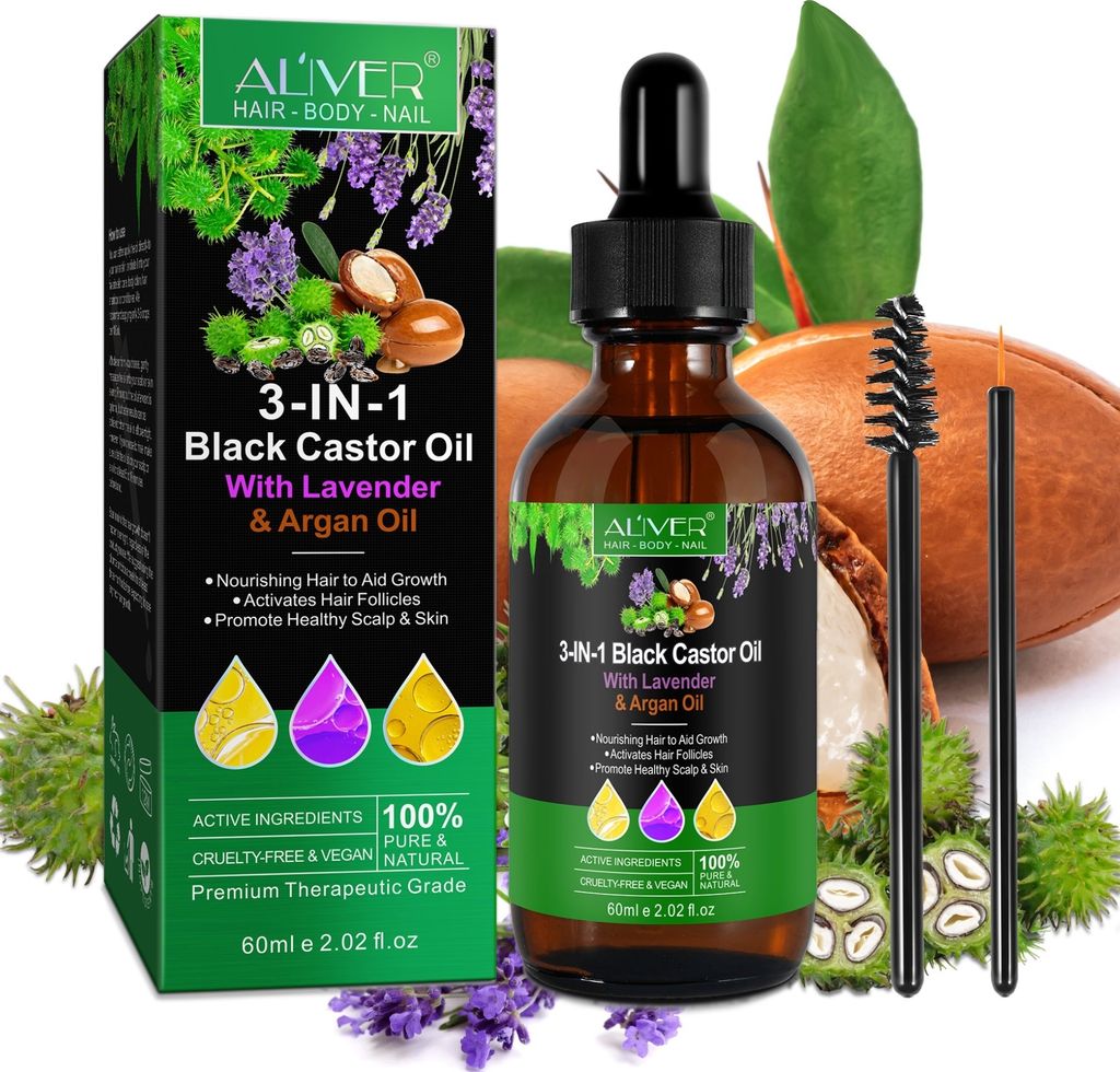 Aliver 3-in-1 Öl für Haare und Haut – Lavendel & Argan & Schwarzes Rizinusöl – 60 ml