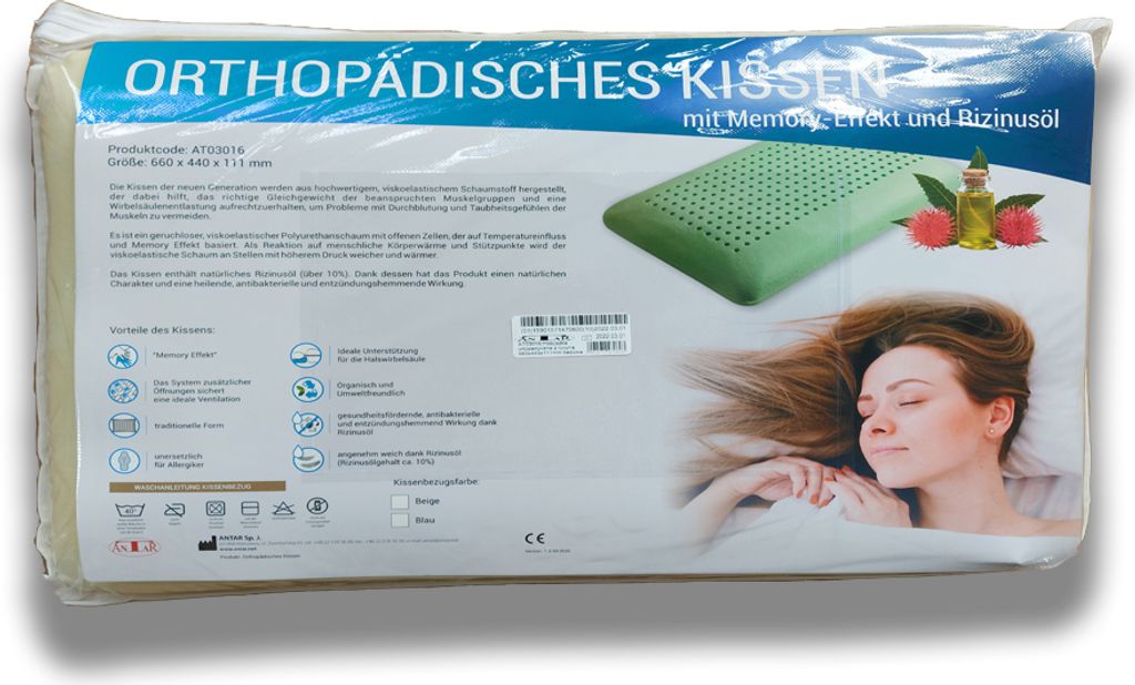 Orthopädisches Kissen mit Rizinusöl Beige AT03016 Größe: 660 x 440 x 111 mm