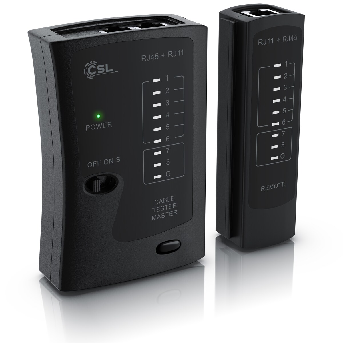 CSL Netzwerktester für RJ45 RJ11 Kabel, Leitungstester, Patchkabel Tester, Netzwerk-Adapter, für Wand & Boden