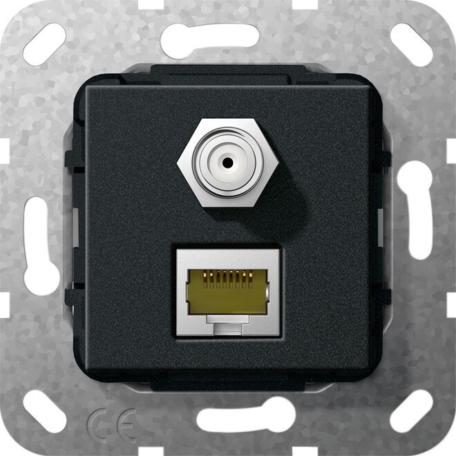 Einsatz Modular Jack RJ45 Cat. 6A Ethernet und SAT-F Buchse schwarz Gira 569710