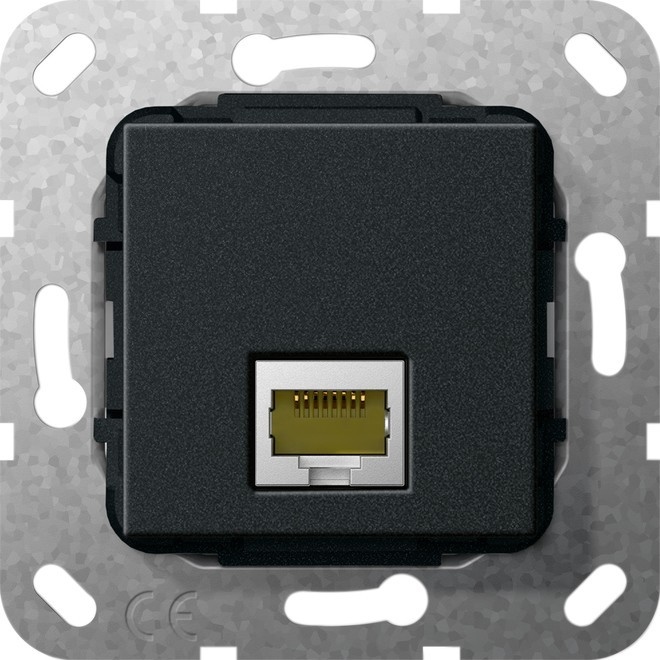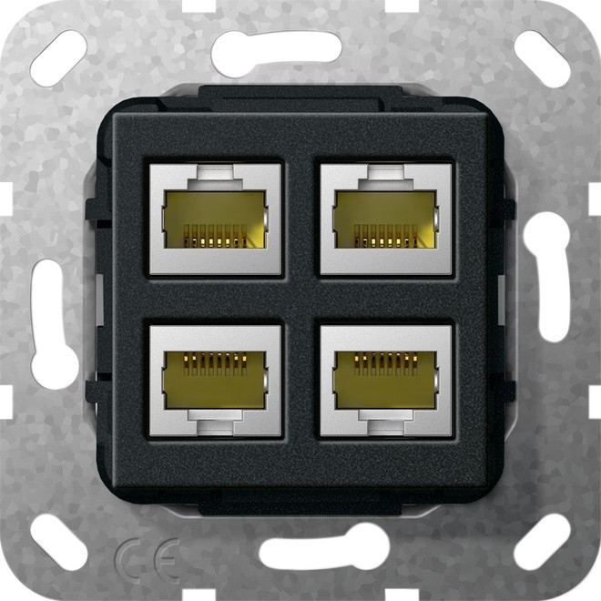 Gira Einsatz Modular Jack RJ45 Cat. 6A 10 GB Ethernet 4fach Schneidklemmtechnik, Schwarz (569910)