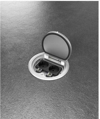 Einbausteckdose Fußbodensteckdose Steckdose rund 2-fach RJ45 & Schuko für Boden & Wand versenkbar