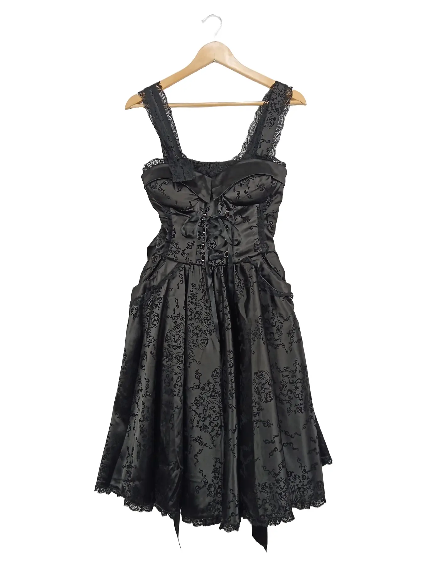 HELL BUNNY Cocktailkleid Damen Gr. 31 Schwarz Vintage Gothic Rockabilly Spitze