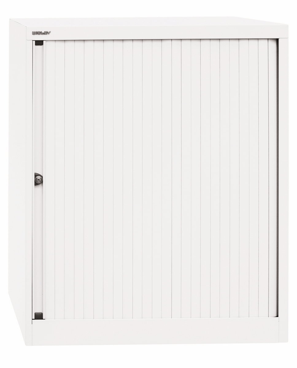 BISLEY Rollladenschrank abschließbar in verkehrsweiß Schrank aus Metall Rolladen aus Kunststoff inkl. 4 Einlegeböden