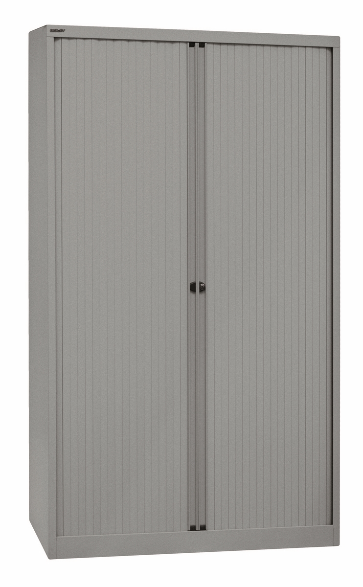 BISLEY Rollladenschrank abschließbar in silber Schrank aus Metall Rolladen aus Kunststoff inkl. 4 Einlegeböden