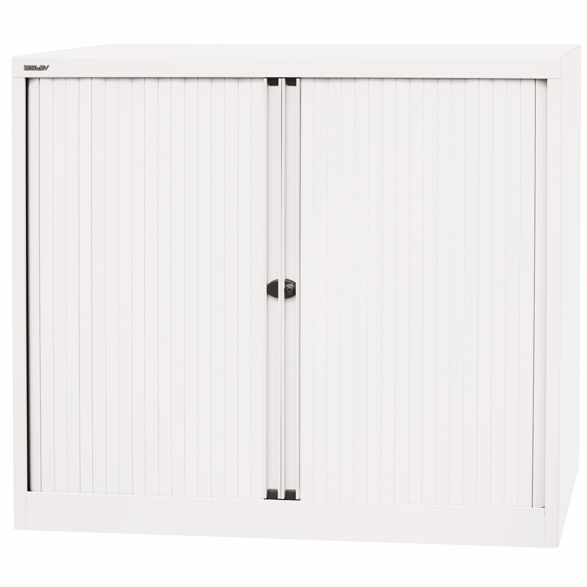 BISLEY Rollladenschrank abschließbar in verkehrsweiß Schrank aus Metall Rolladen aus Kunststoff inkl. 2 Einlegeböden