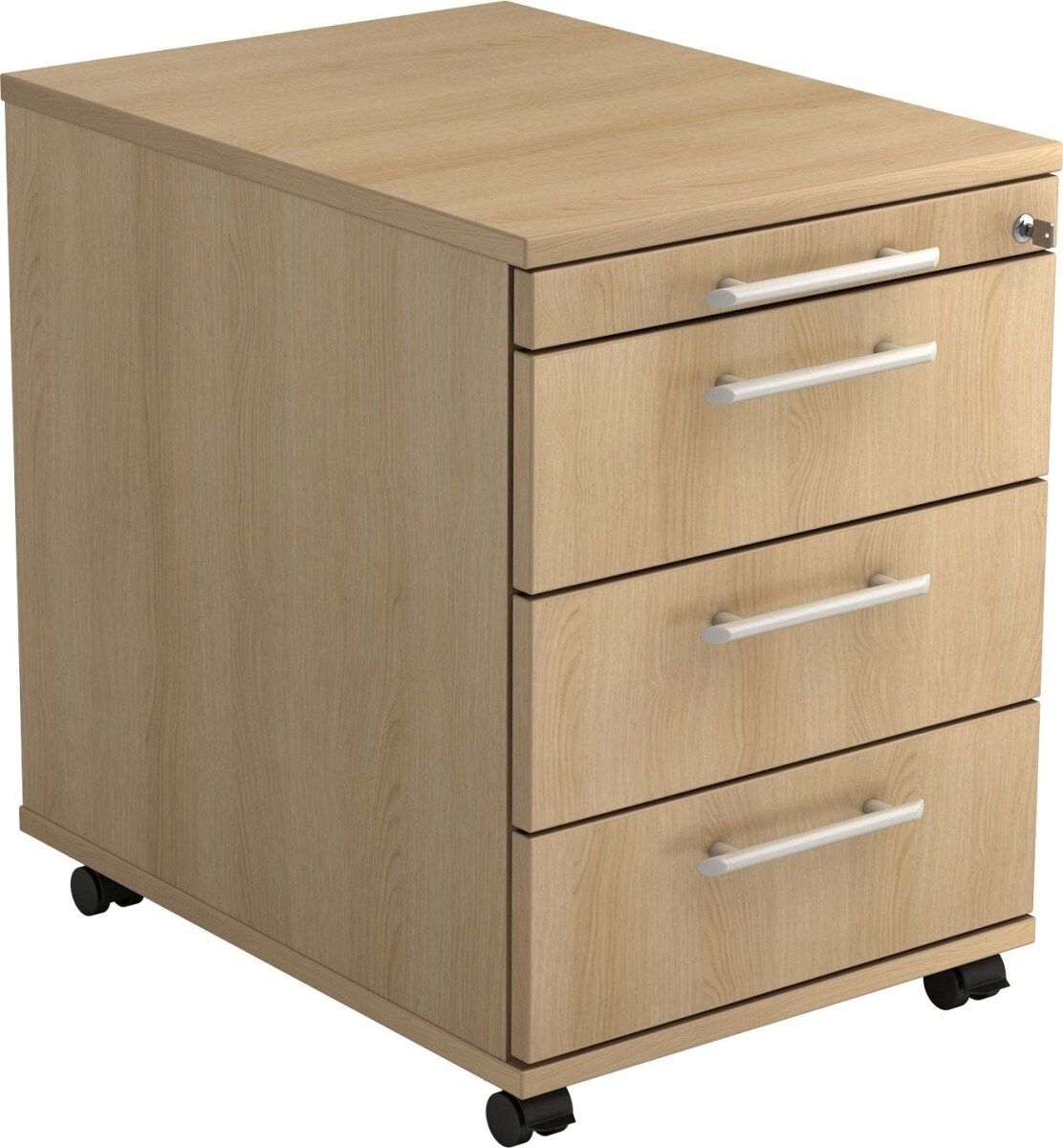 Hammerbacher Rollcontainer 58cm 3 Schübe Schloss Relinggriff Eiche