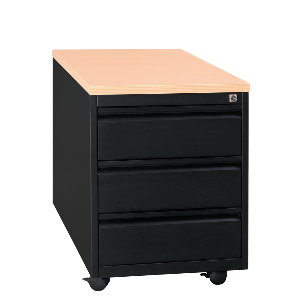 Abschließbarer Rollcontainer mit 3 Schubladen, 5 Rädern und Hängeregister, Stahl schwarz 39x48x60 cm