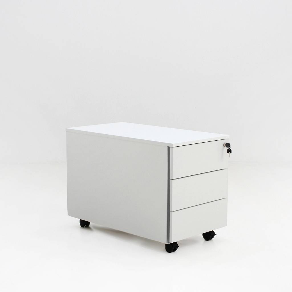 Rollcontainer Oveta Tiefe 600/800mm weiss | Breite 43 cm | Höhe 55 cm | teilweise abschliessbar | 3 Schubladen | Cortina