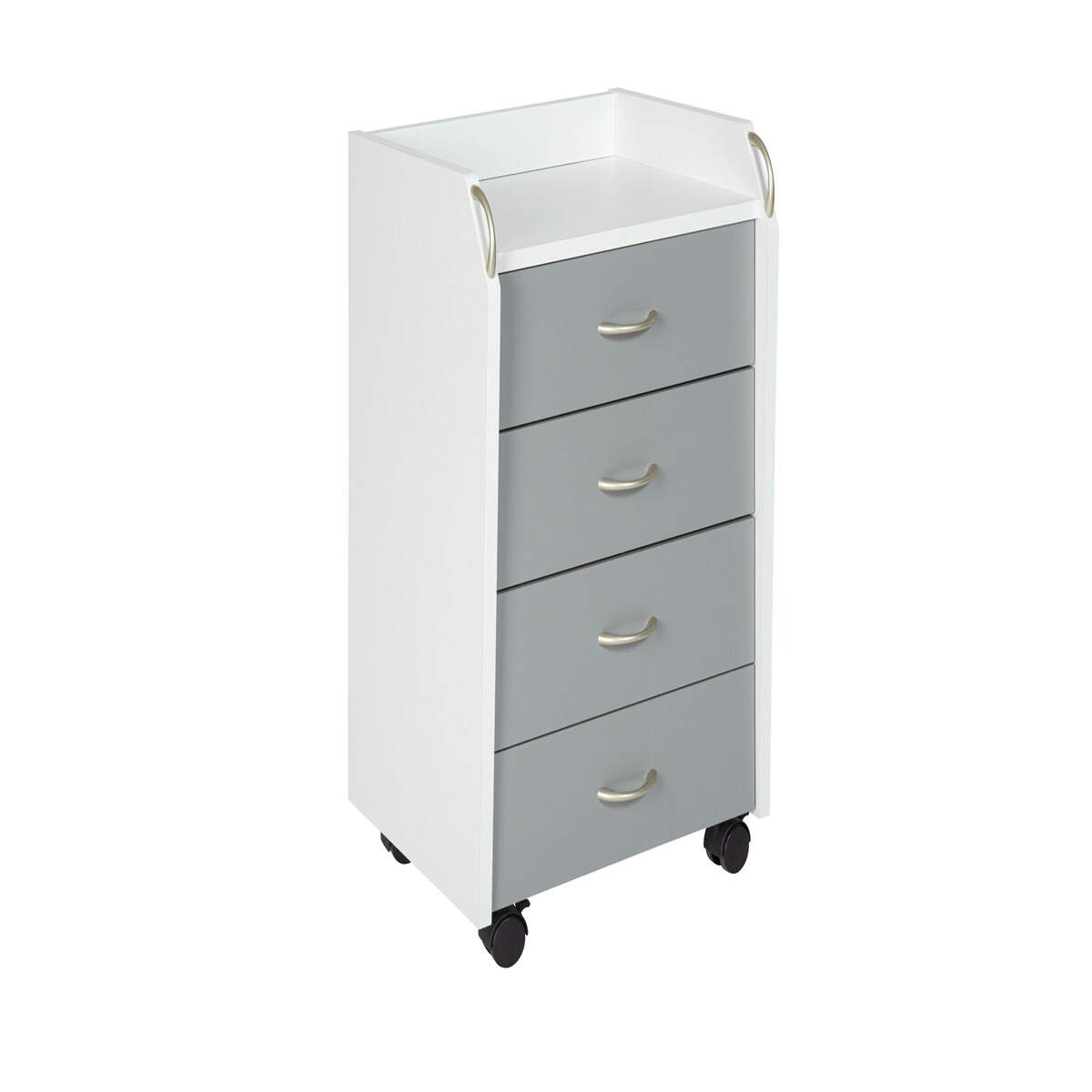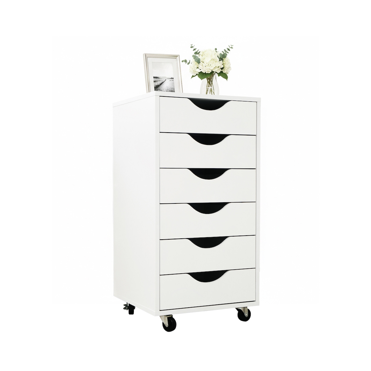 Printi Kommode Rollcontainer 6 Schubladen, 4 Rollen (inkl. 2 mit Stopper) Weiss, Grau.