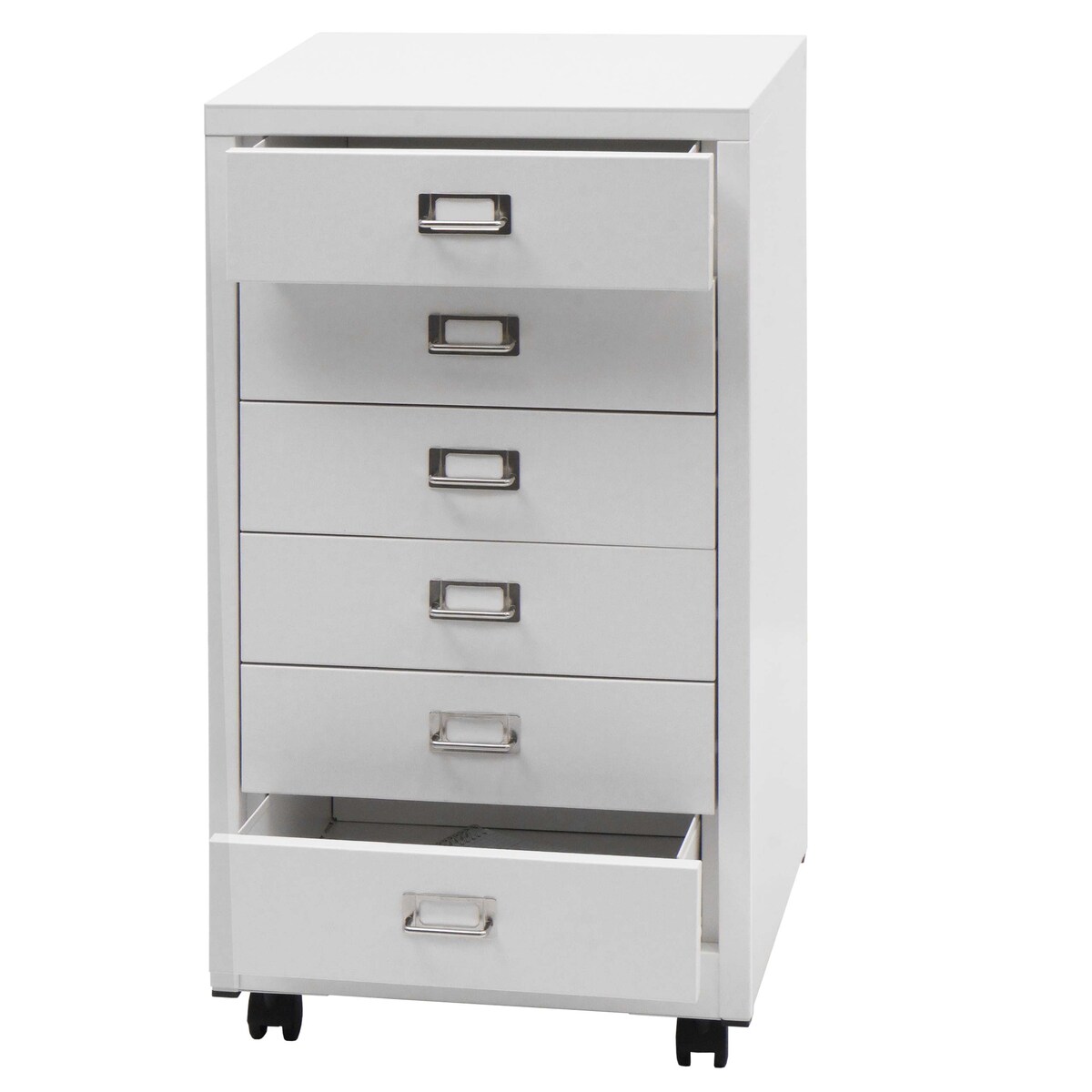 Mendler Rollcontainer Boston T851, Schubladenschrank Stahlschrank, 69x28x41cm 6 Schubladen ~ weiß