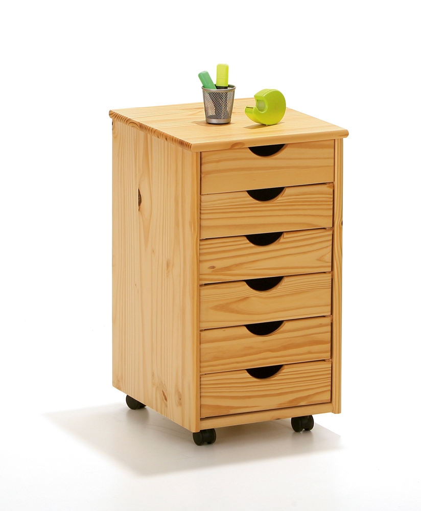 Rollcontainer mit 6 Schubladen aus massivem Kiefernholz – Natur lackiert – BxTxH: 35x39x66 cm