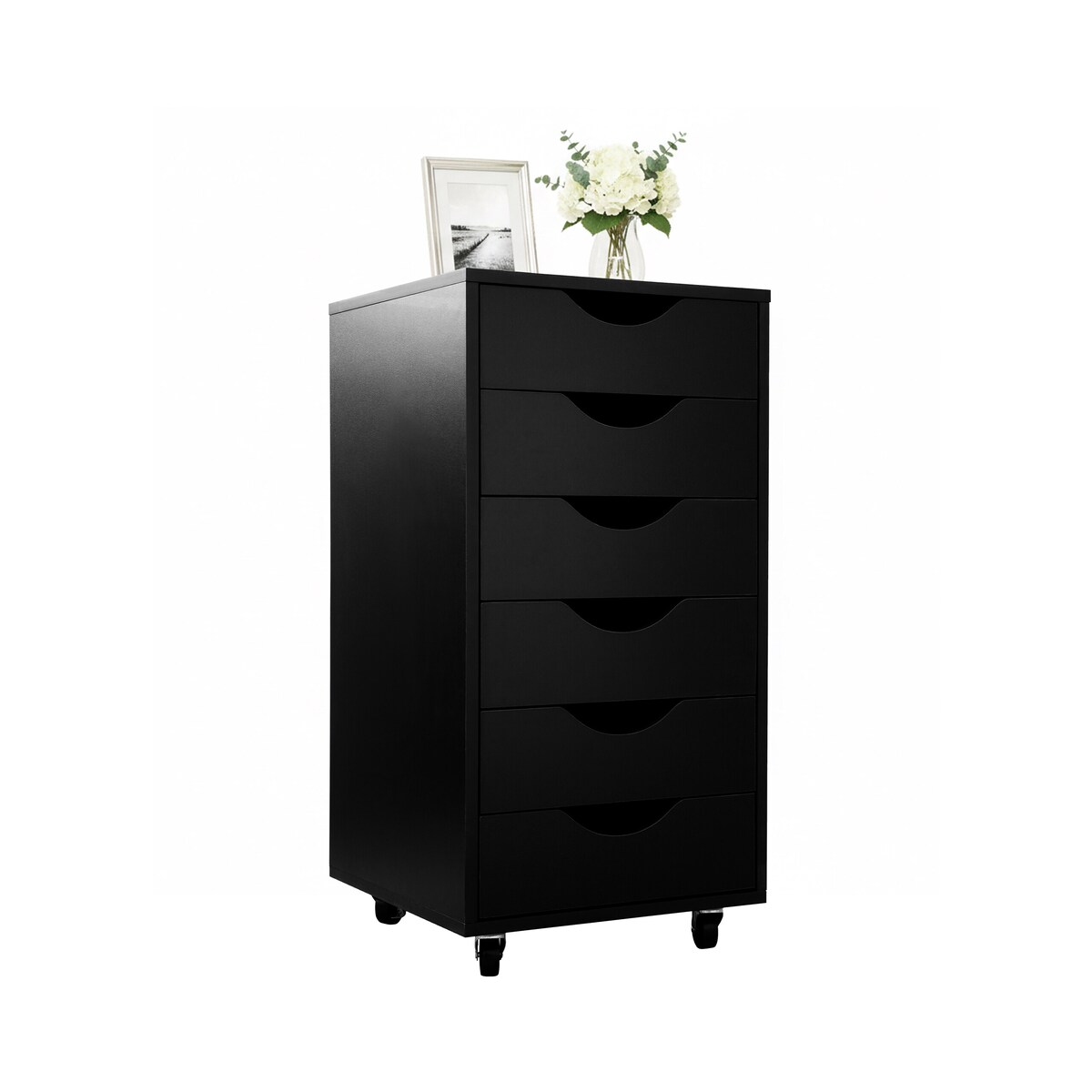 Rollcontainer mit Schubladen, 6 Schubladen, mit Rollen, Büro Organizer, Schreibtischschrank, Rollwagen Unterschrank, Aufbewahrungsschrank - Holz h...