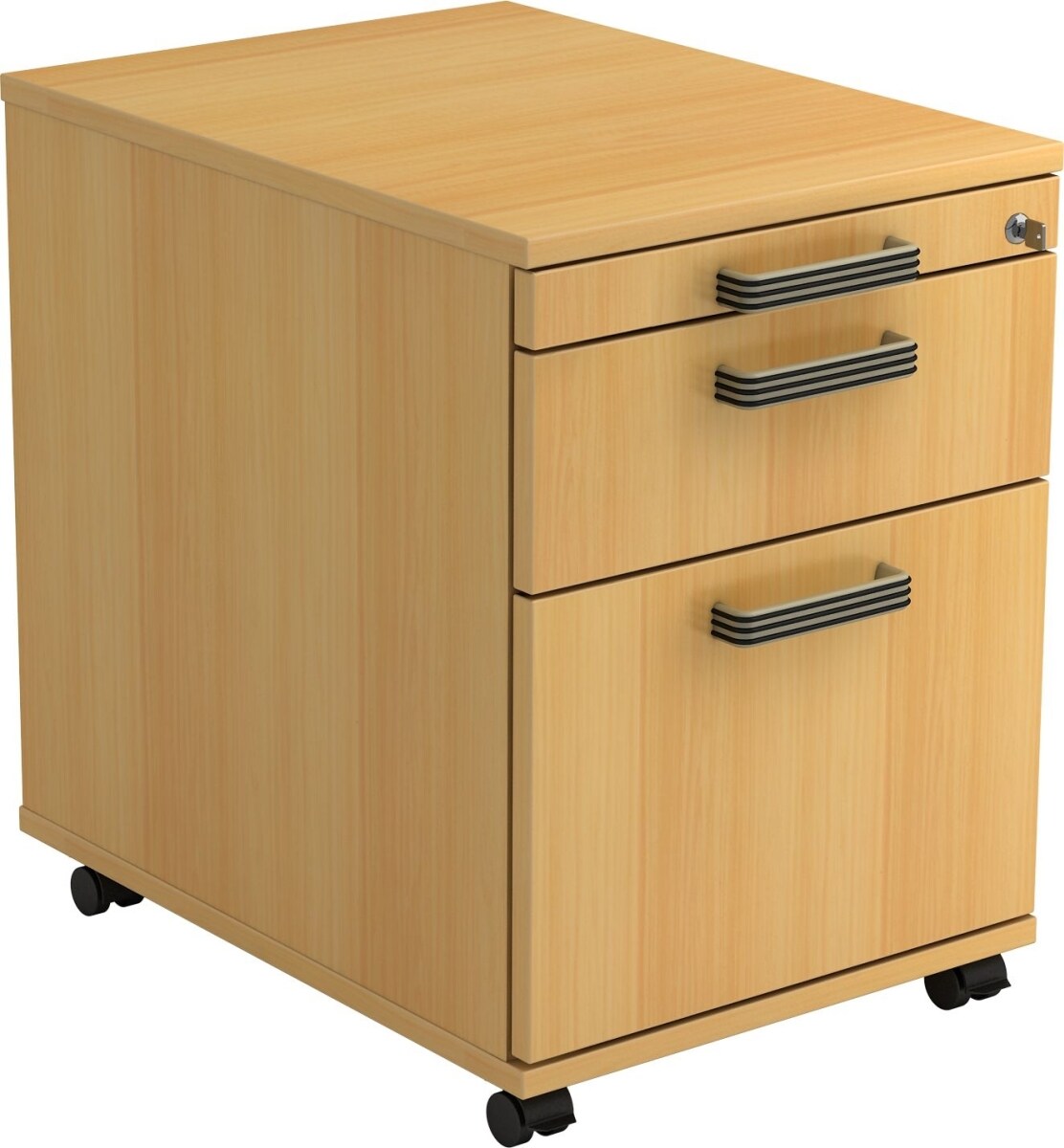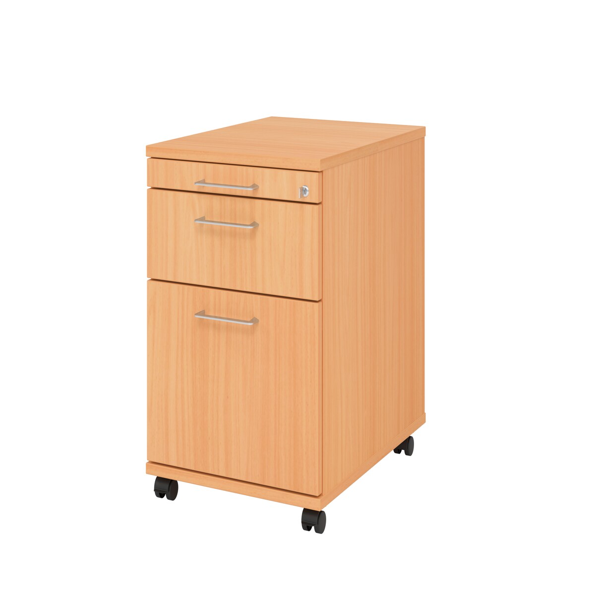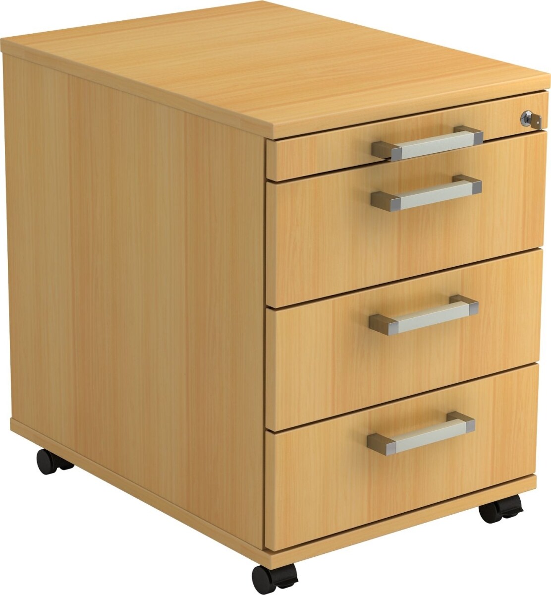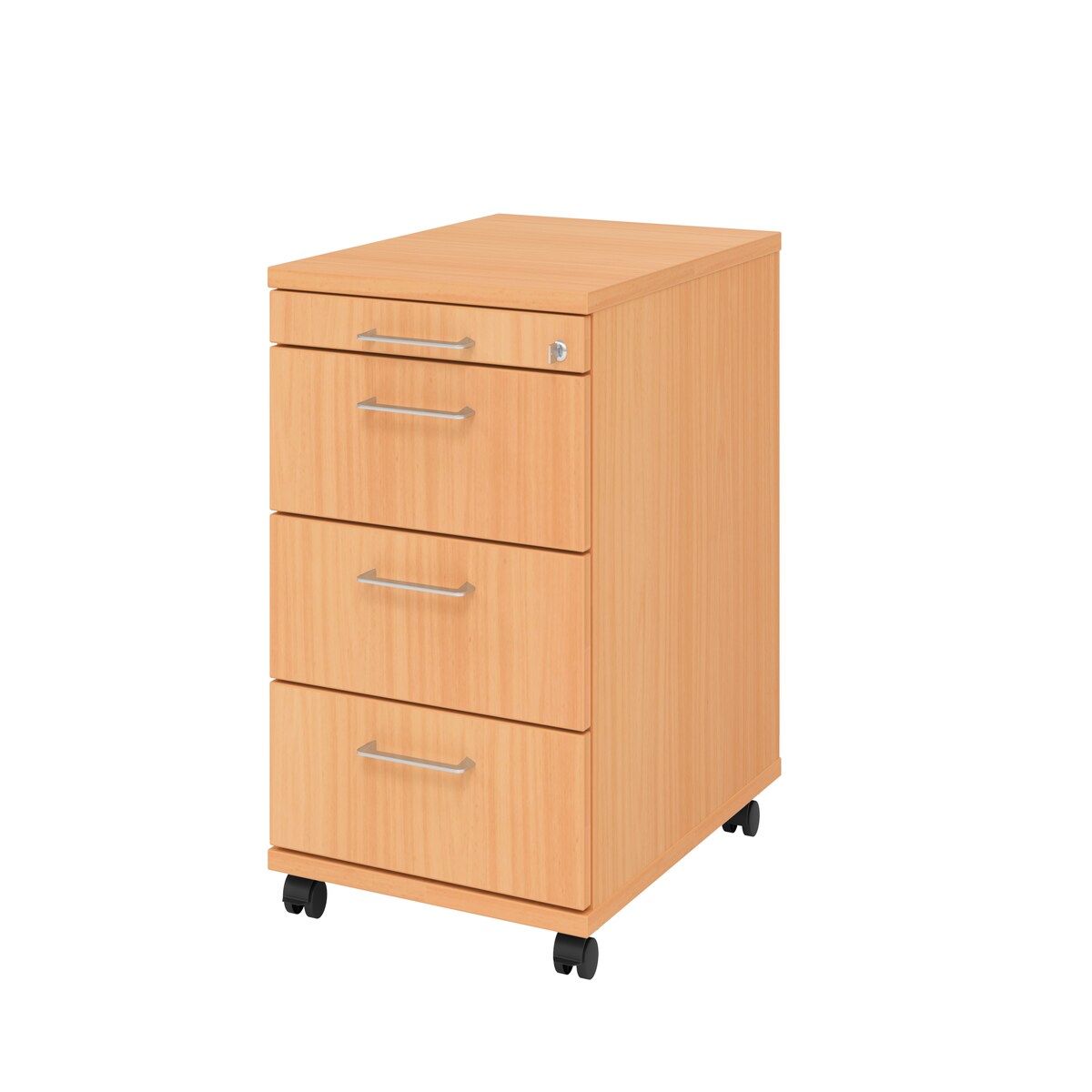 Rollcontainer Arvo | Buche | HxBxT 51,2x42,8x80cm | Relinggriff | 3 Schübe | Mit Schloss & Zentralverriegelung