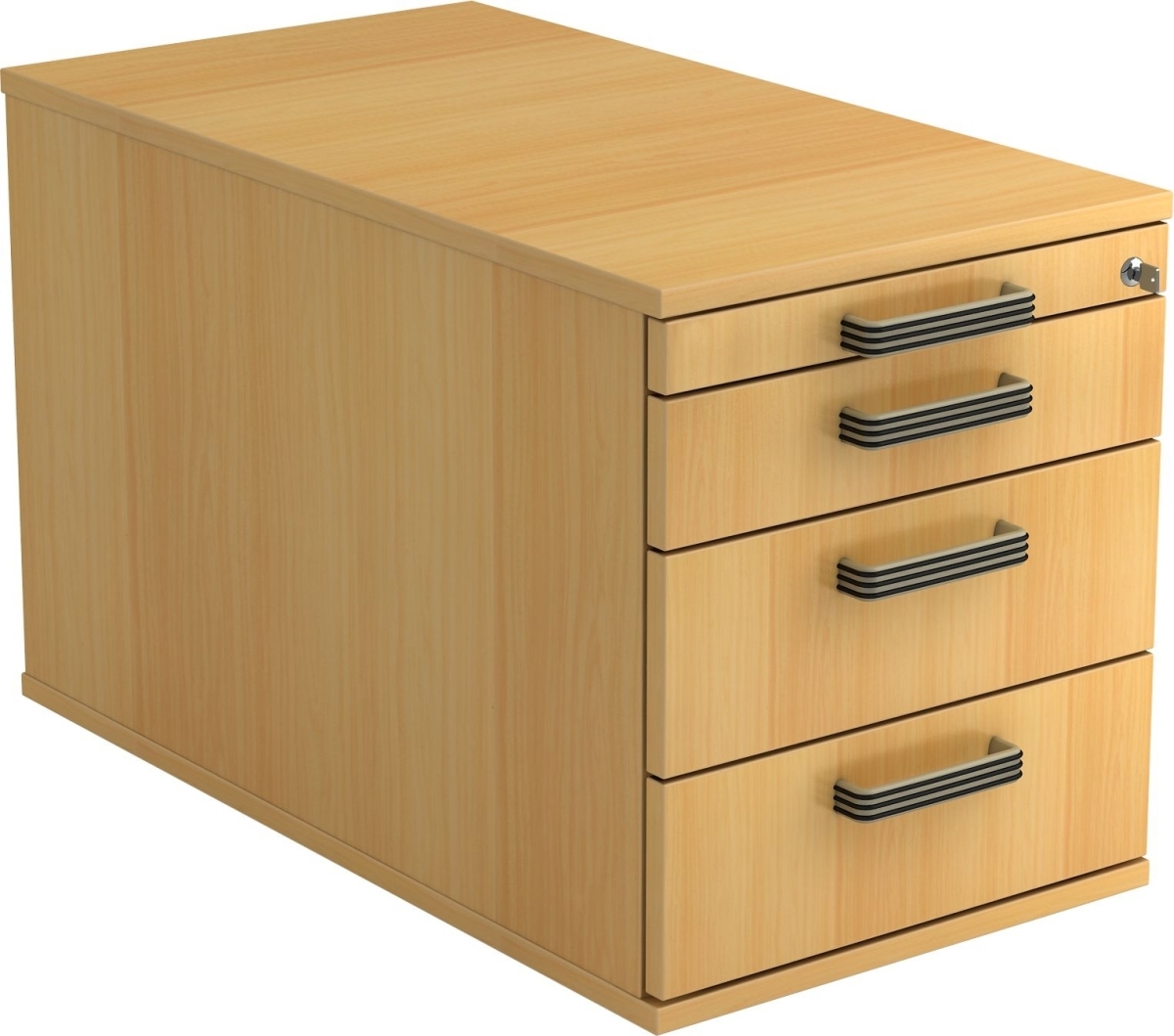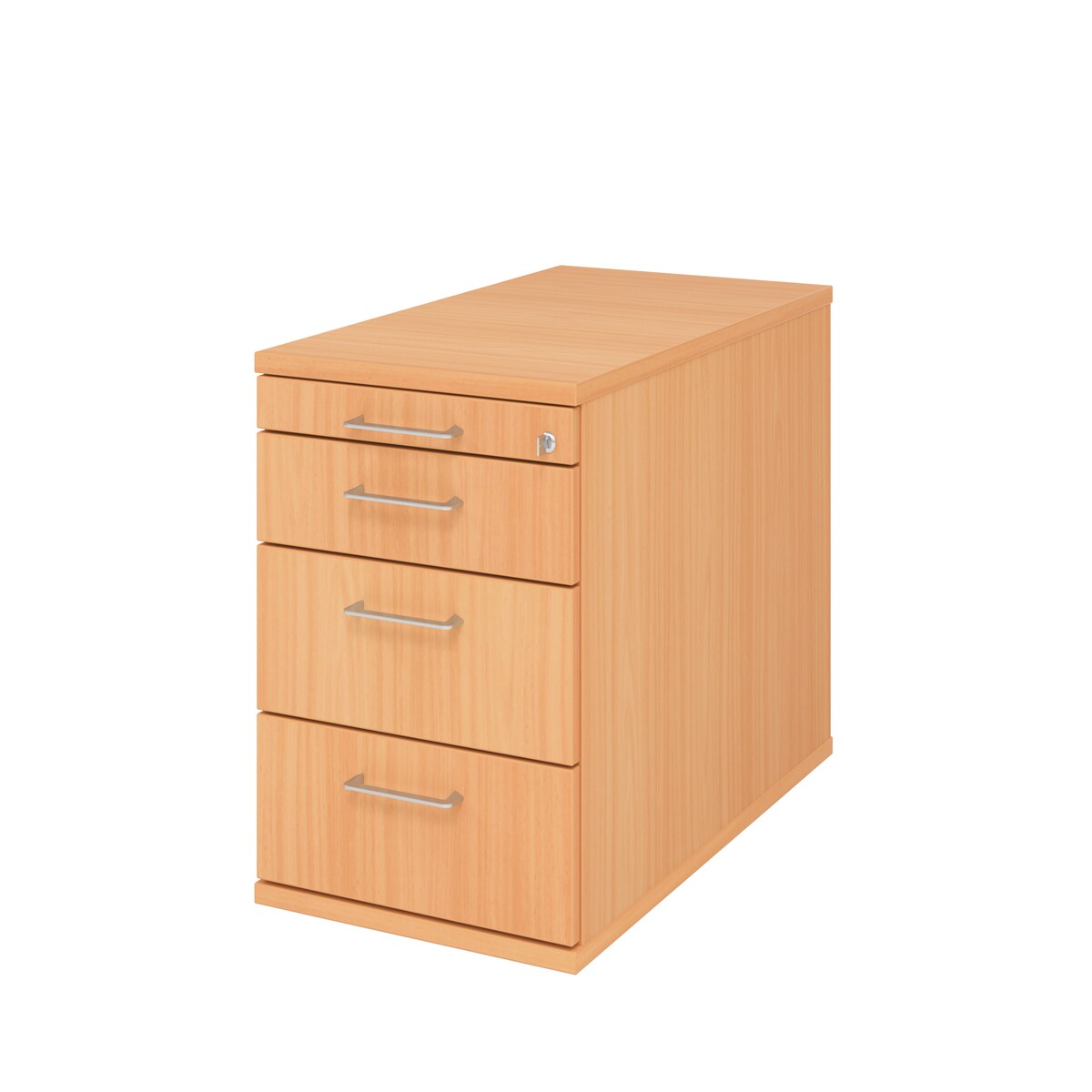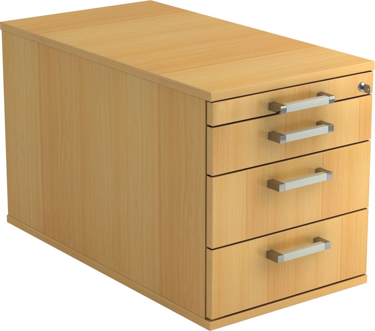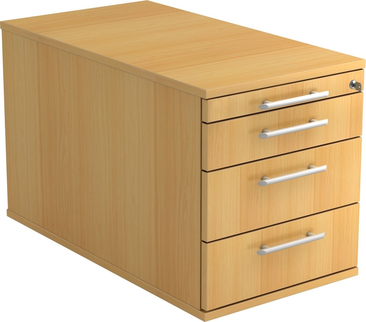 Rollcontainer Anssi | Buche | HxBxT 59x42,8x58cm | Relinggriff | 4 Schübe | Mit Schloss & Zentralverriegelung