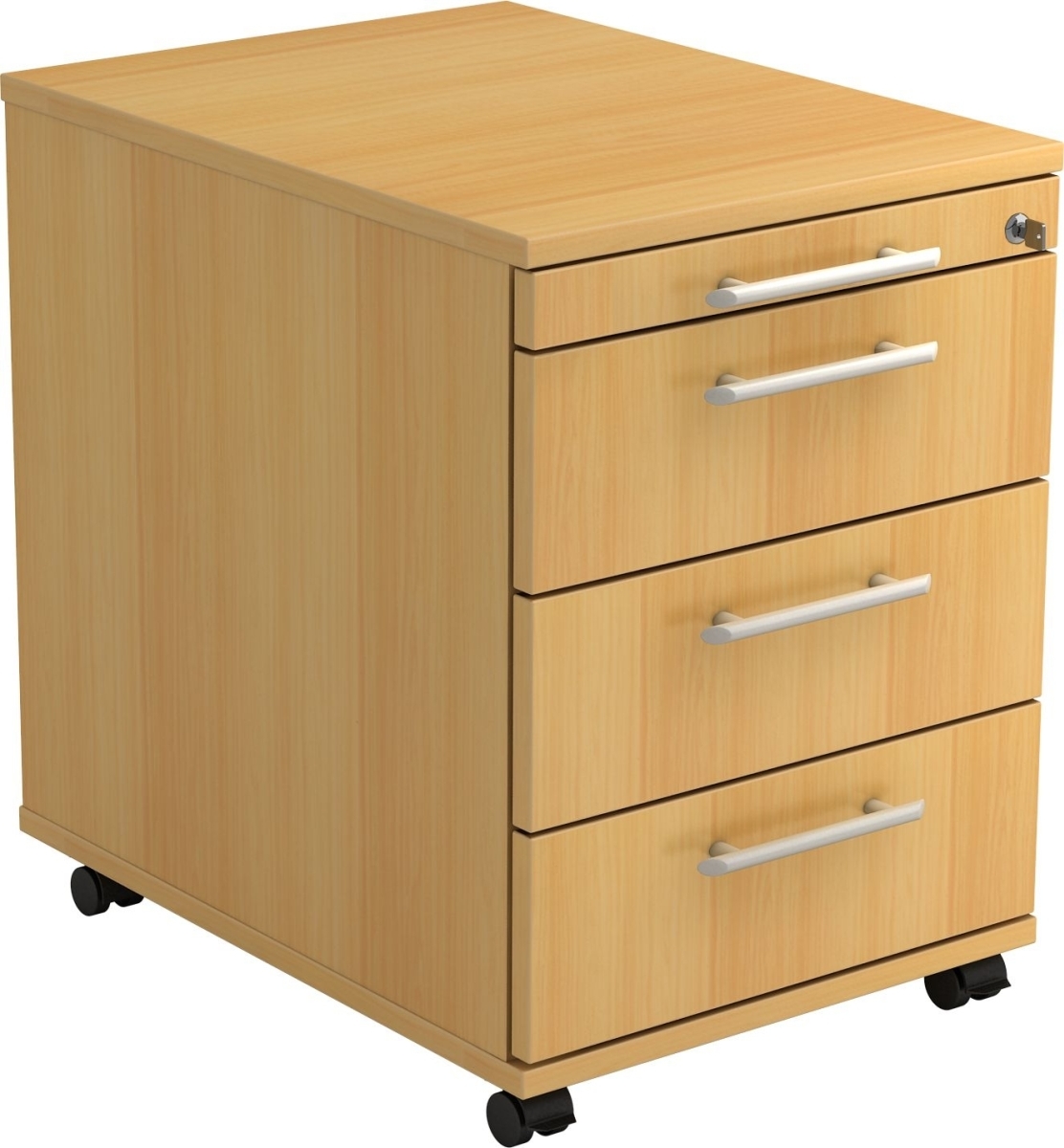 Rollcontainer Arvo | Buche | HxBxT 51,2x42,8x80cm | Metallgriff | 3 Schübe | Mit Schloss & Zentralverriegelung