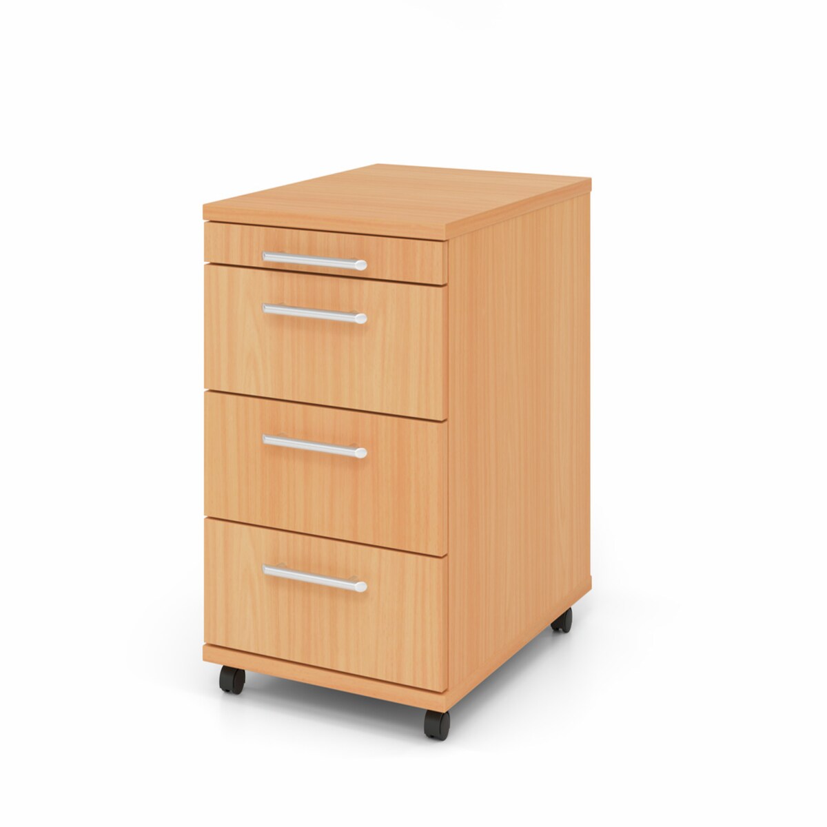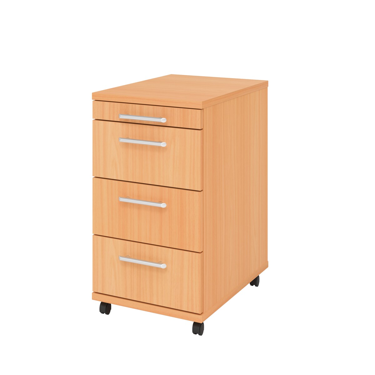 Rollcontainer Schubcontainer Buche Kunststoffrollen 4 Schubladen #1800