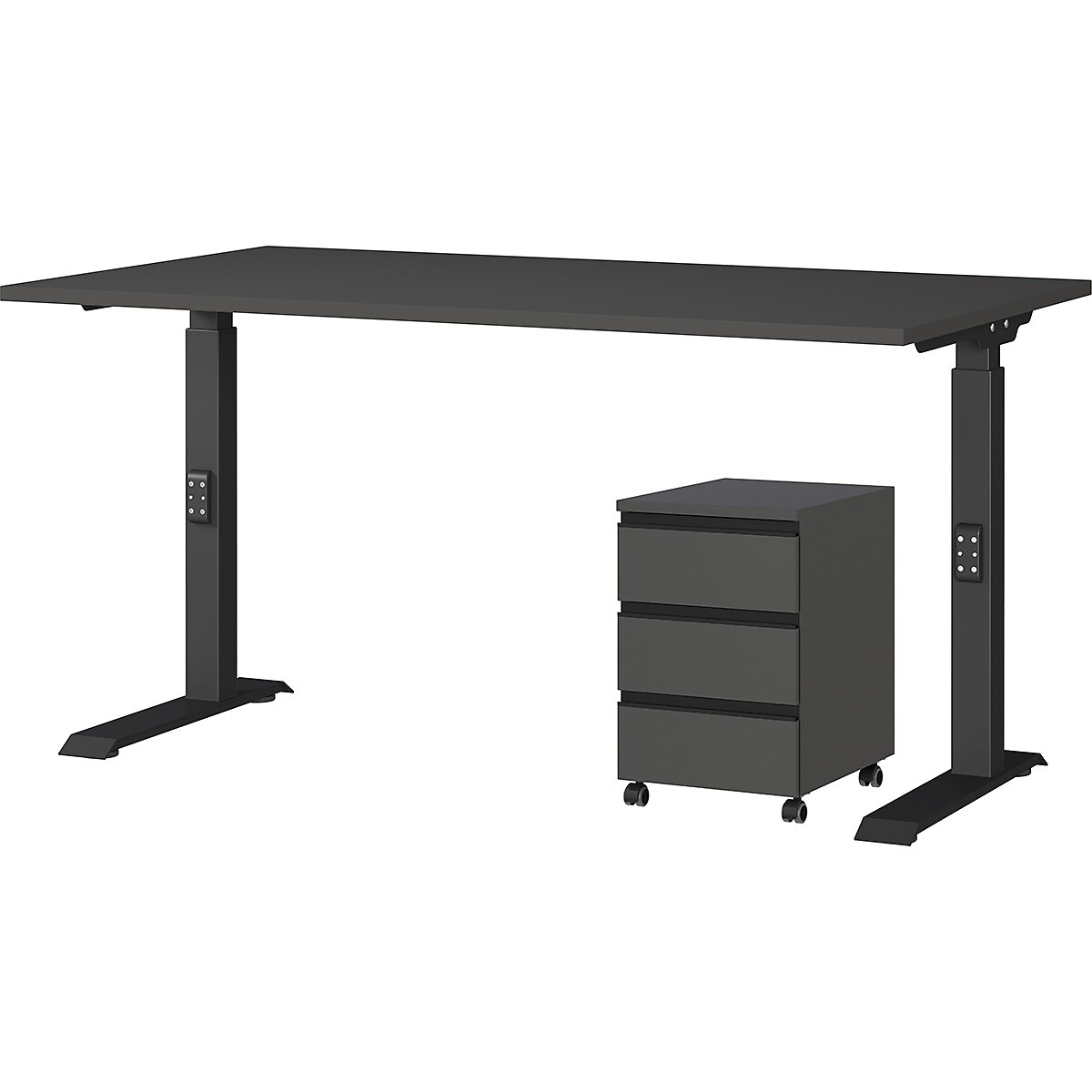 Büro Set 2-teilig | Schreibtisch 160x80cm & Rollcontainer Graphit | Einstellbar 68-91cm & Soft-Close | Made in Germany `Stuttgart` Kadima Design