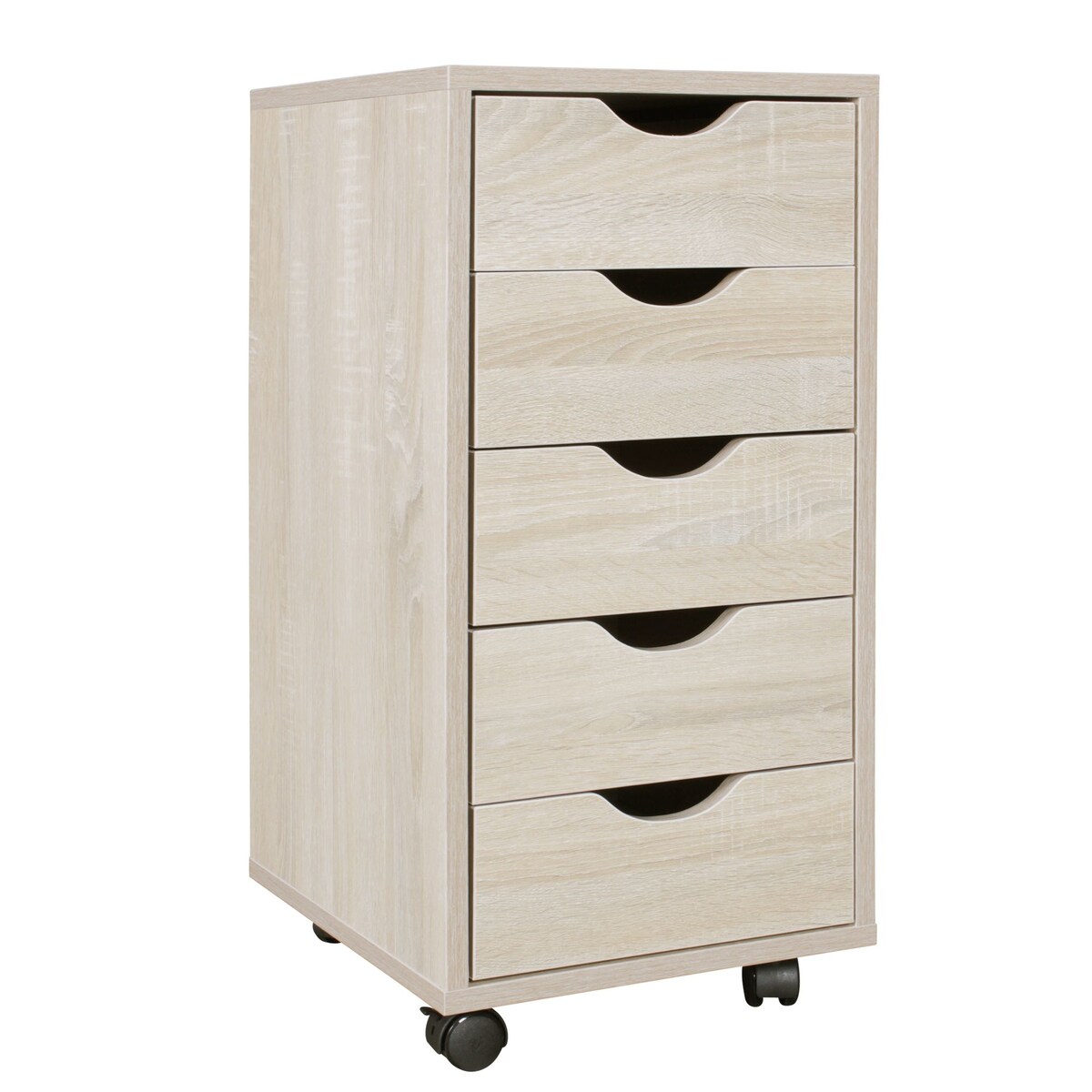 KADIMA DESIGN Rollcontainer Sonoma 33 x 63 x 38 cm Holz Schubladenschrank Schreibtisch, Büro Schrank mit 5 Schubladen, Container Rollschrank klein