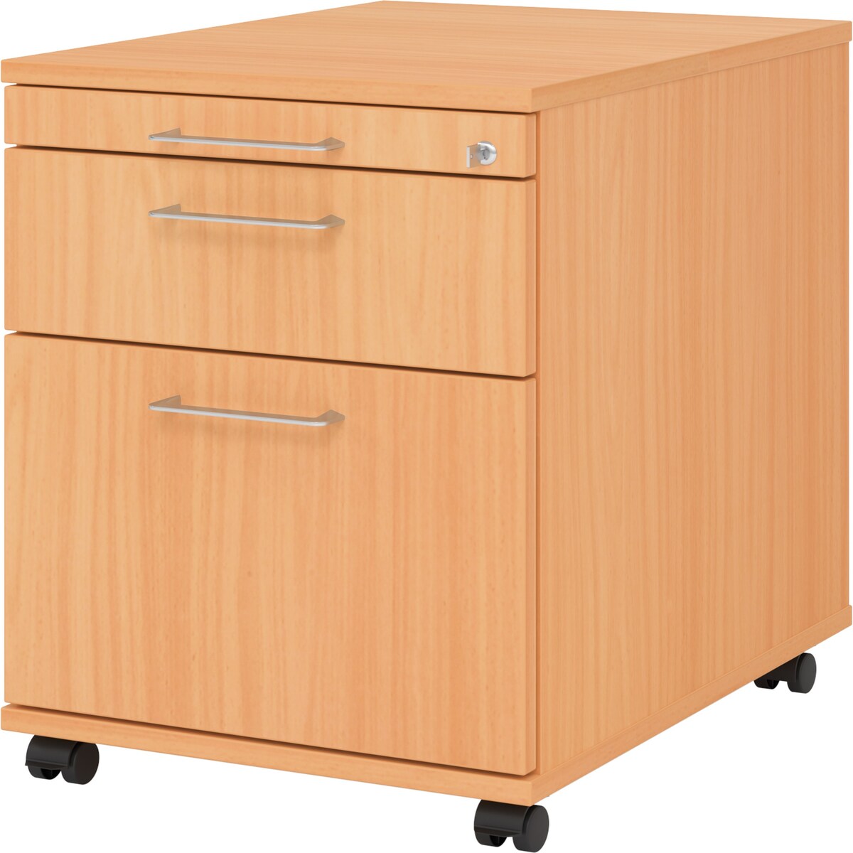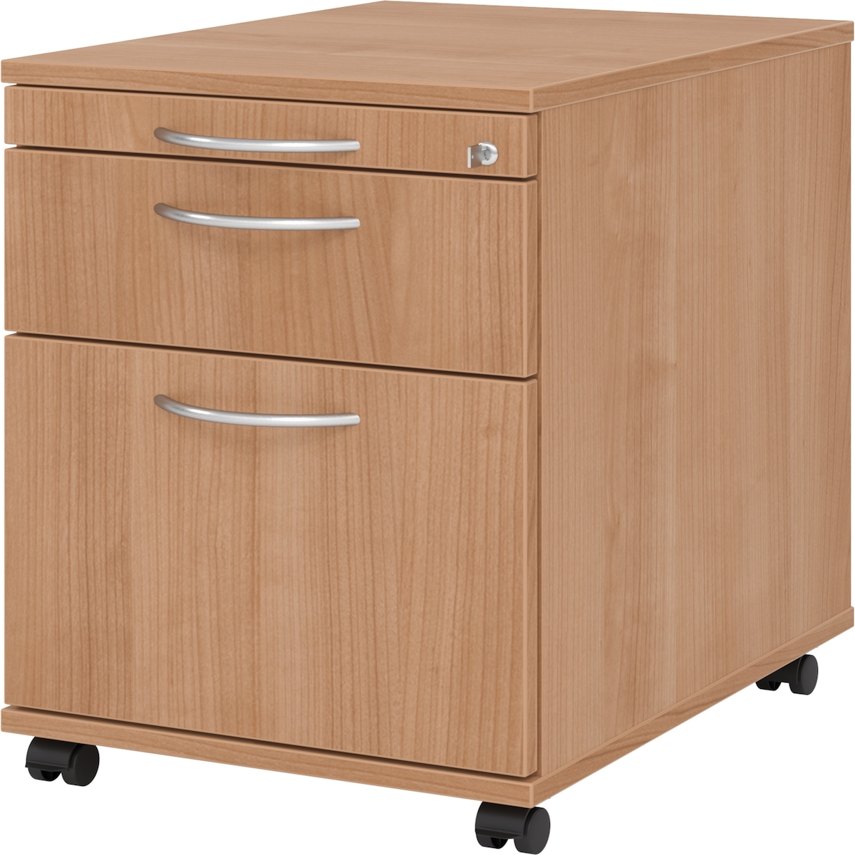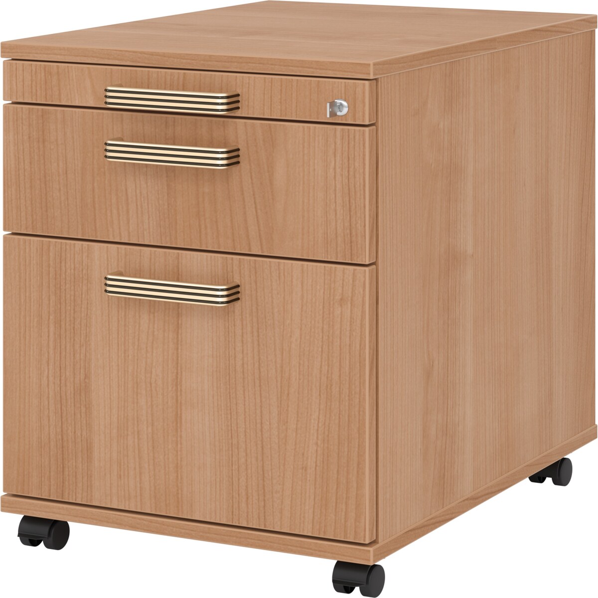bümö Rollcontainer mit Hängeregister für Hängeordner, Container abschließbar in Buche - Rollwagen mit Hängeregistratur als Schreibtisch Unterschrank