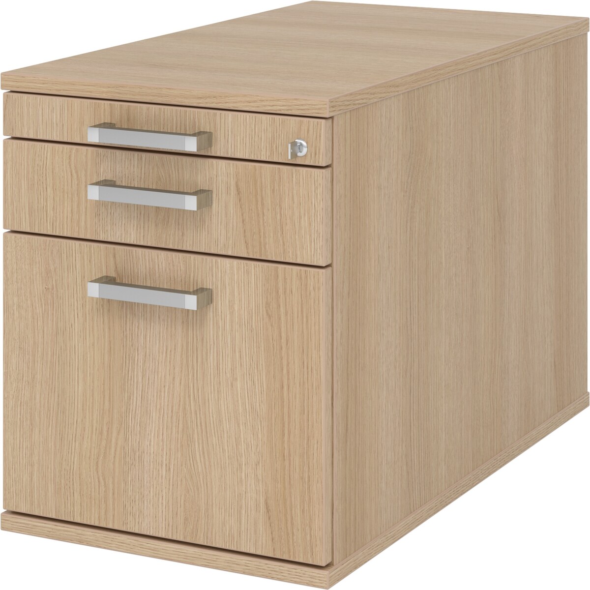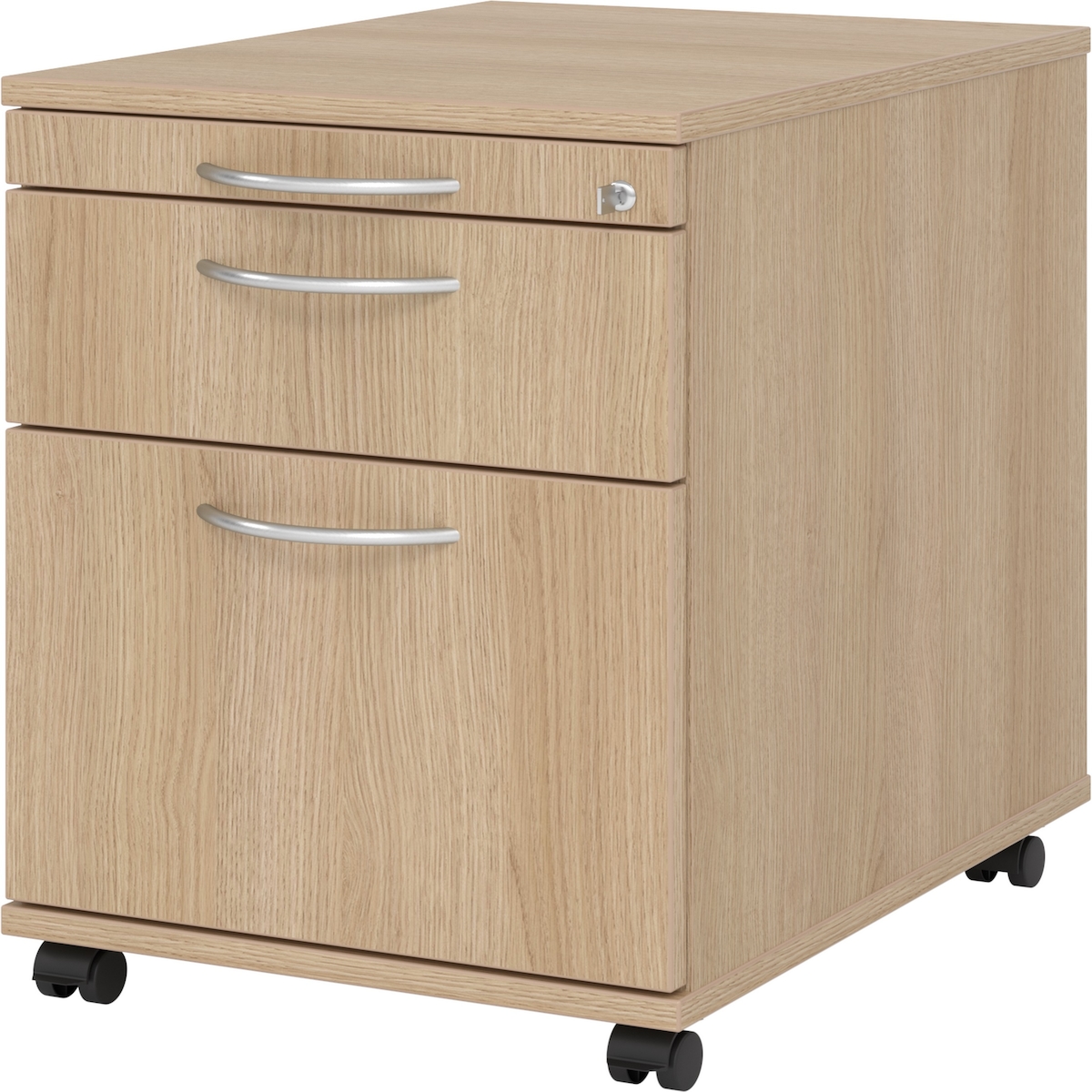 bümö Rollcontainer mit Hängeregister für Hängeordner, Container abschließbar in Eiche - Rollwagen mit Hängeregistratur als Schreibtisch Unterschrank