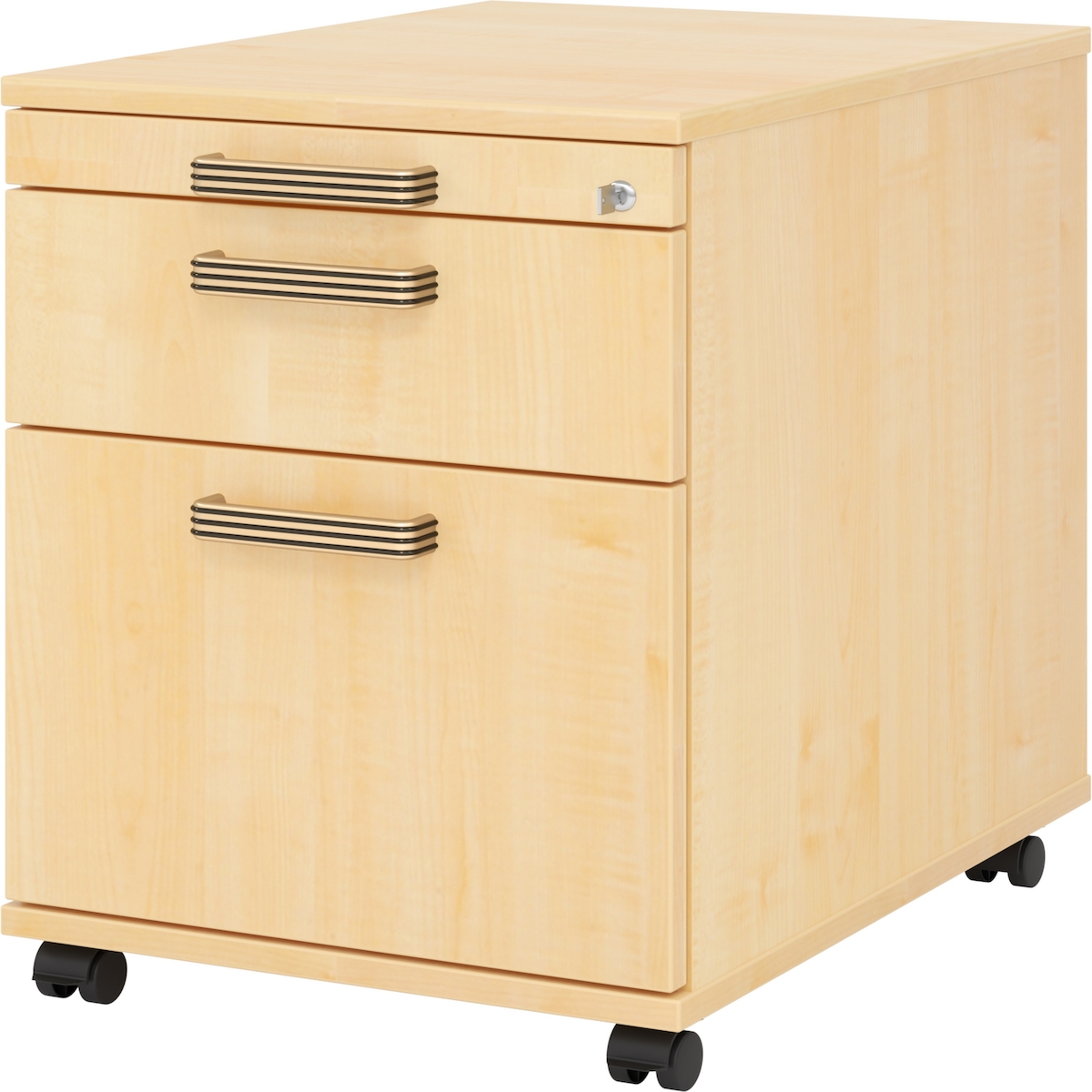 bümö Rollcontainer mit Hängeregister für Hängeordner, Container abschließbar in Ahorn - Rollwagen mit Hängeregistratur als Schreibtisch Unterschrank