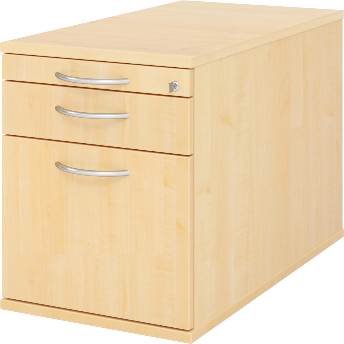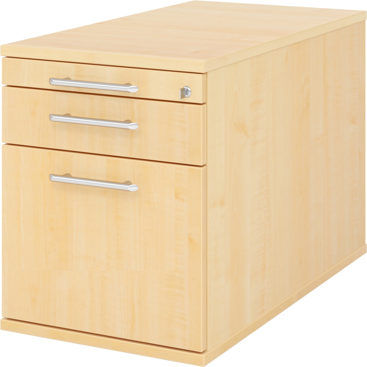 bümö Rollcontainer mit Hängeregistratur, Container abschließbar aus Holz in Ahorn - Rollwagen für's Büro mit Hängeregister als Schreibtisch