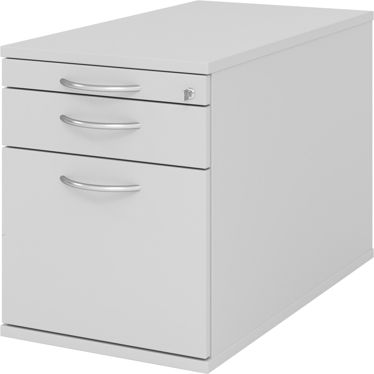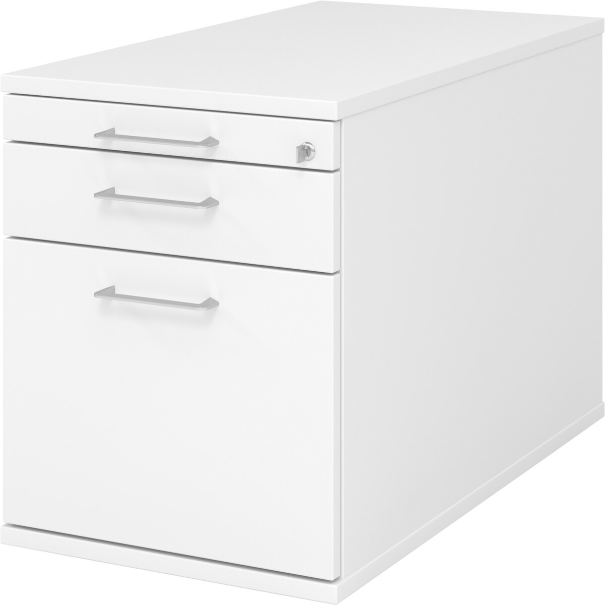 bümö Rollcontainer mit Hängeregister für Hängeordner, Container abschließbar in weiß - Rollwagen mit Hängeregistratur als Schreibtisch Unterschrank
