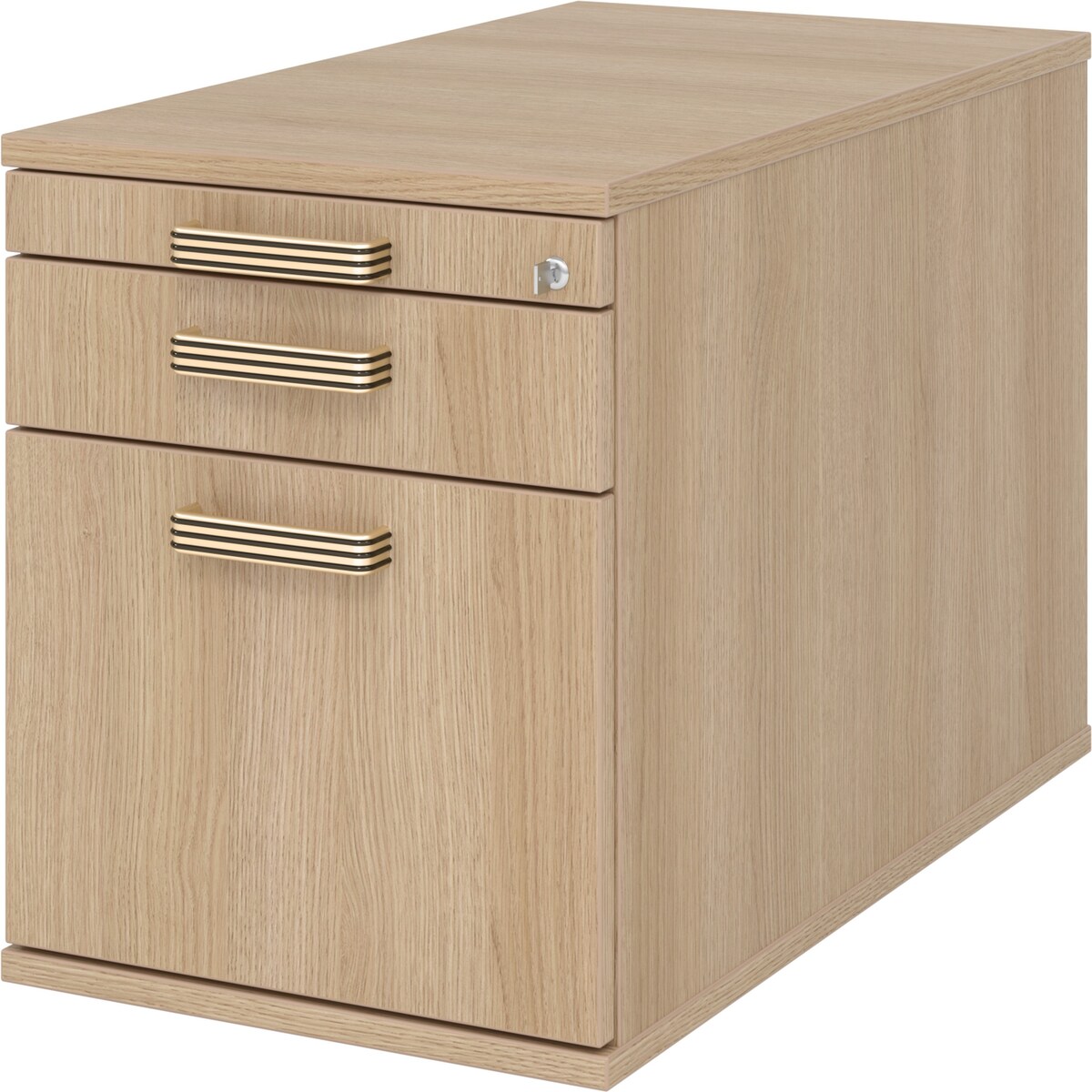 bümö Rollcontainer mit Hängeregistratur, Container abschließbar aus Holz in Eiche - Rollwagen für's Büro mit Hängeregister als Schreibtisch