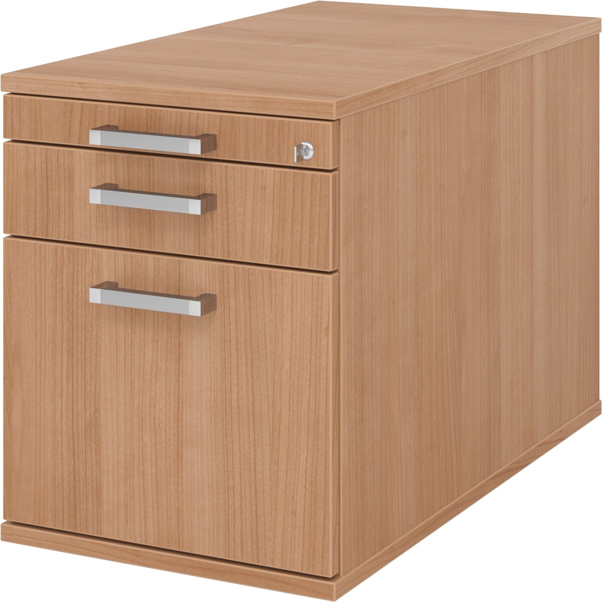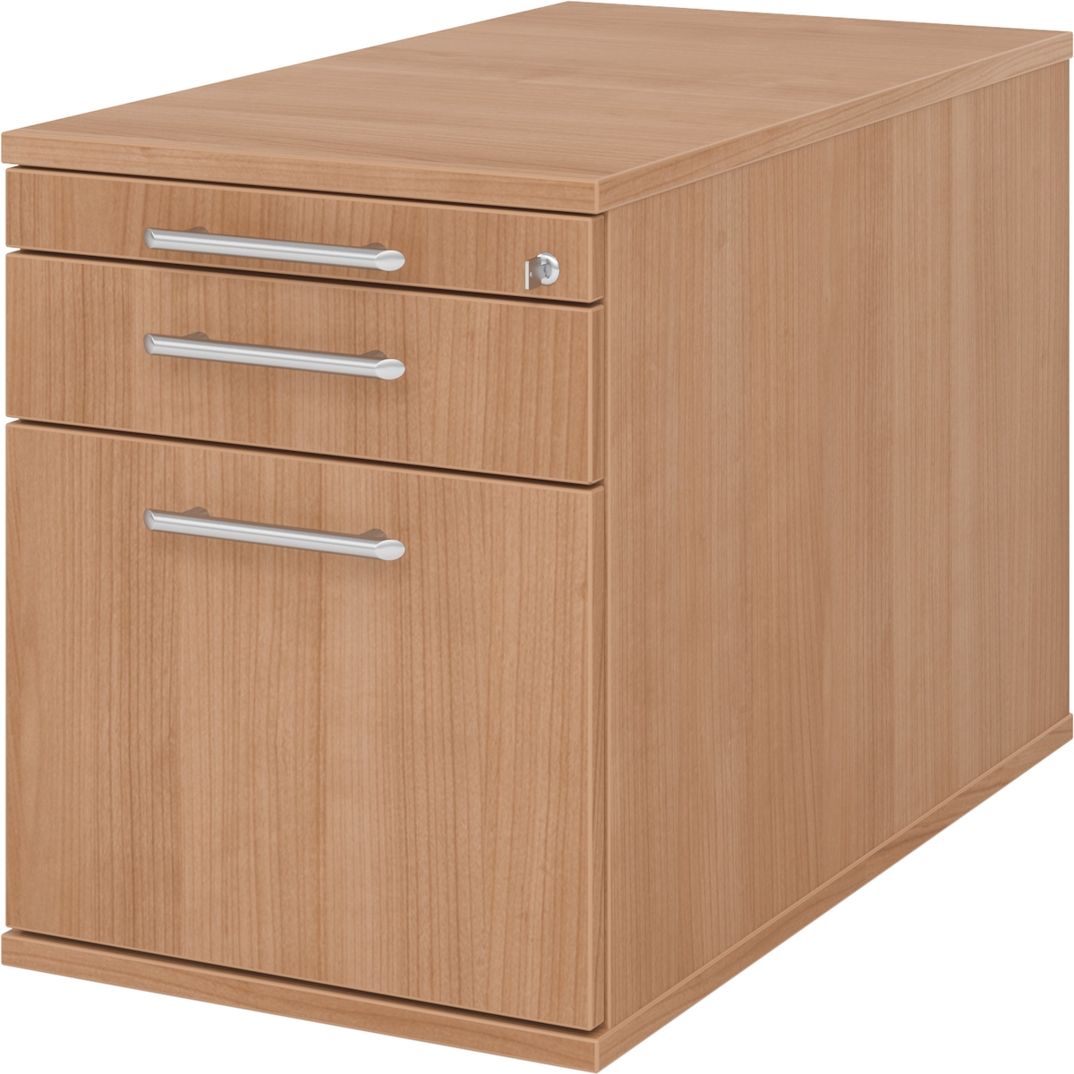 bümö Rollcontainer mit Hängeregister für Hängeordner, Container abschließbar in Nussbaum - Rollwagen mit Hängeregistratur als Schreibtisch