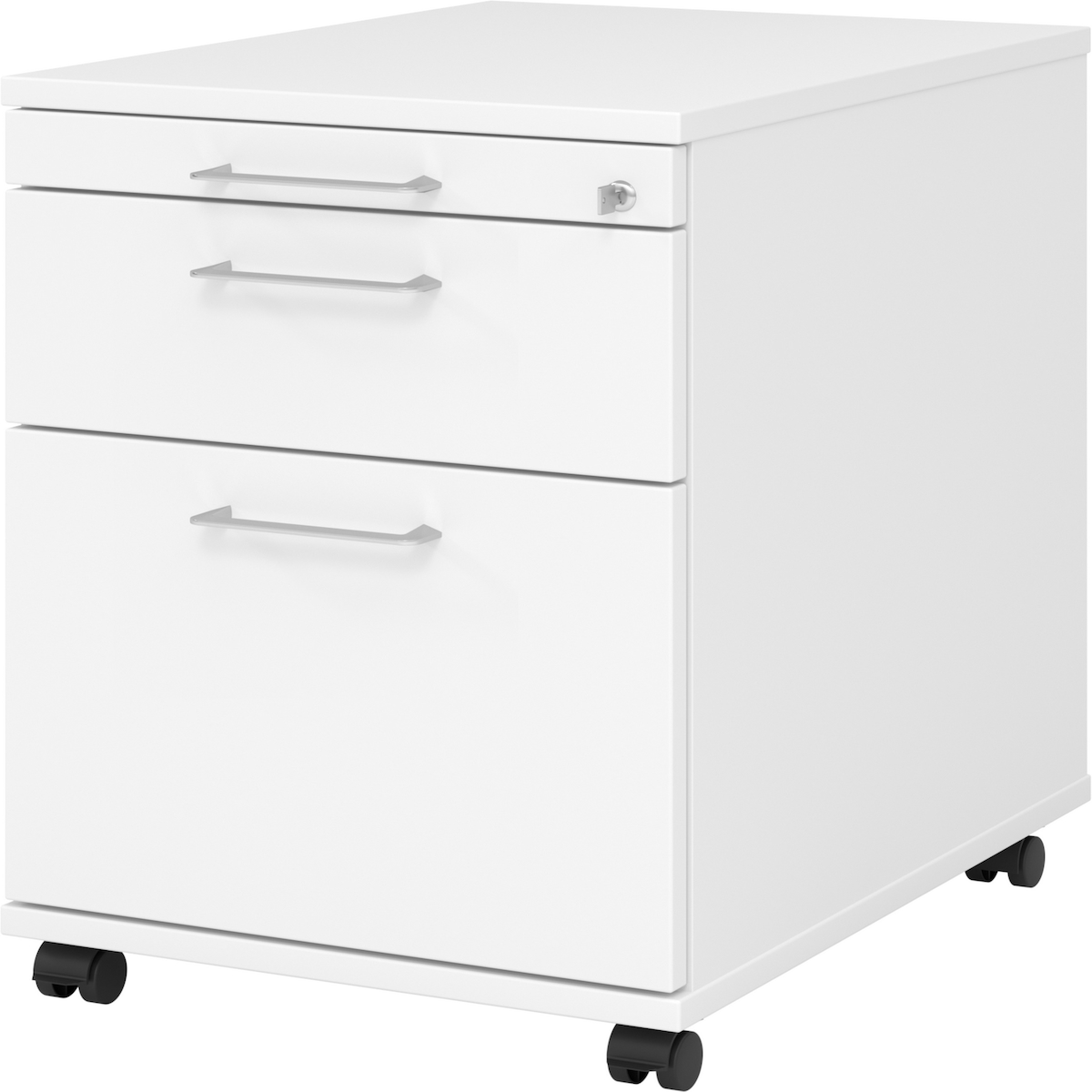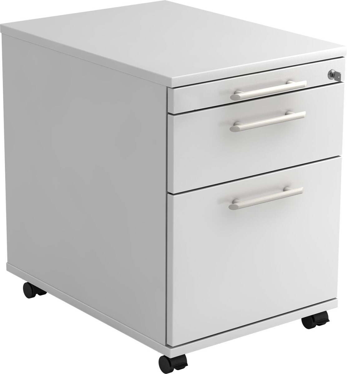 Rollcontainer 58cm 1 Schub 1 Hängeregistratur Schloss Bügelgriff Weiß
