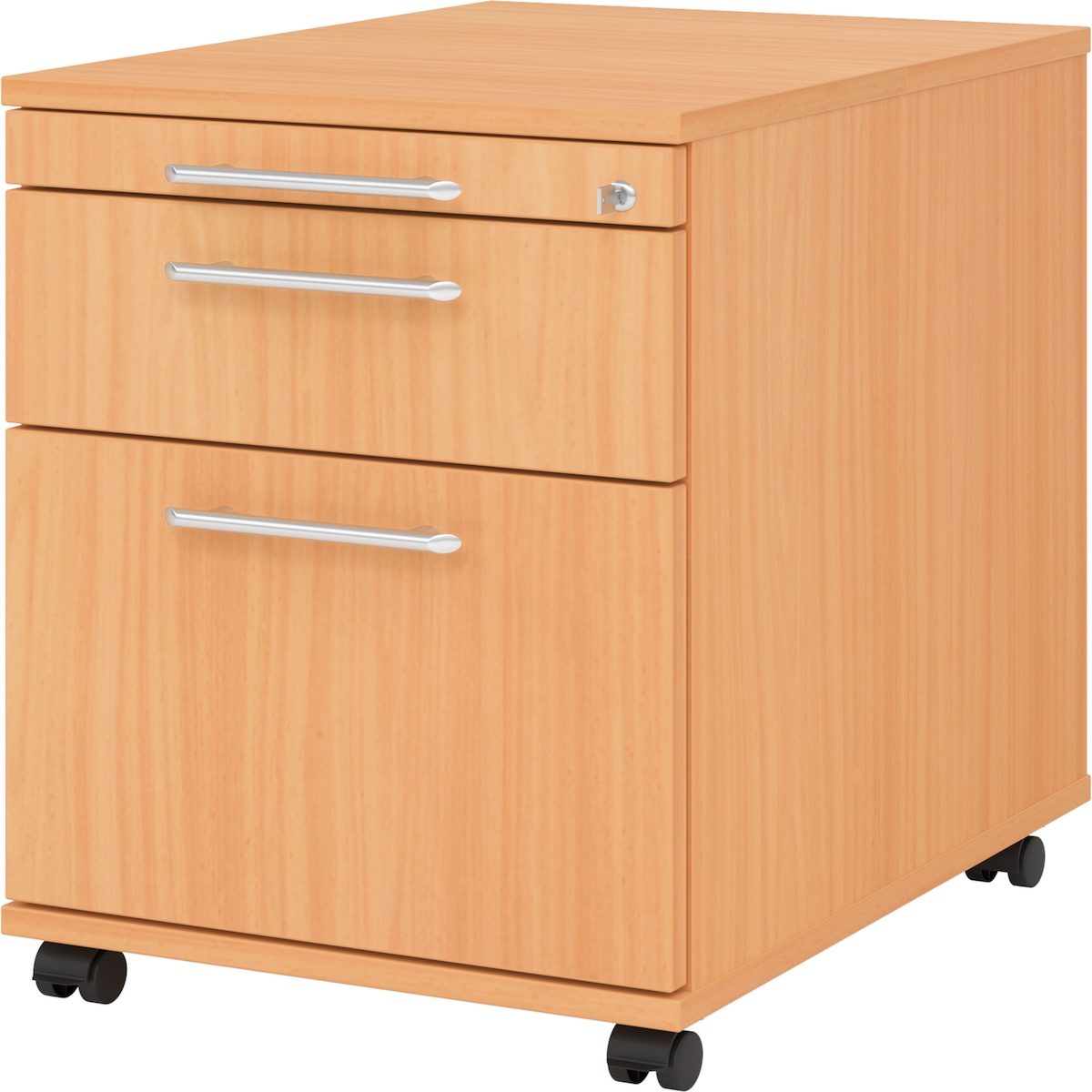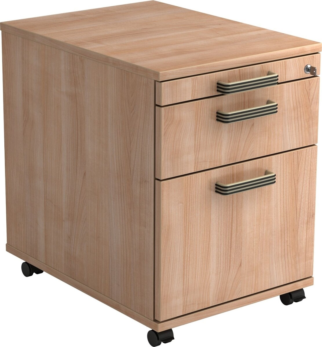 Rollcontainer 58cm 1 Schub 1 Hängeregistratur Schloss Bügelgriff Buche
