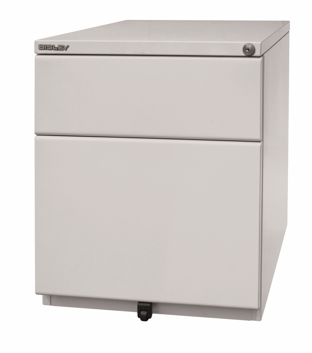 BISLEY OBA Rollcontainer mit 2 Schüben aus Metall abschließbar in lichtgrau - Bürocontainer mit Universalschublade & Hängeregistratur, Container mit