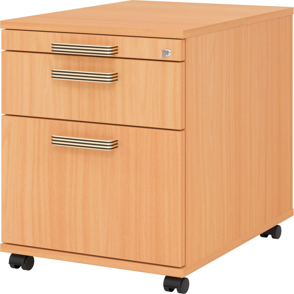 bümö Rollcontainer mit Hängeregister für Hängeordner, Container abschließbar in Buche - Rollwagen mit Hängeregistratur als Schreibtisch Unterschrank