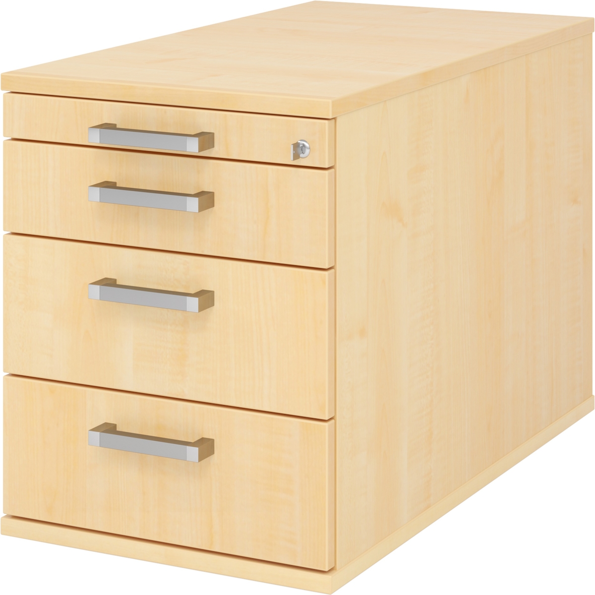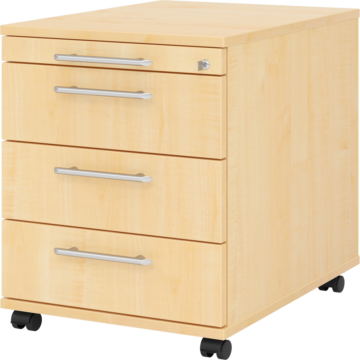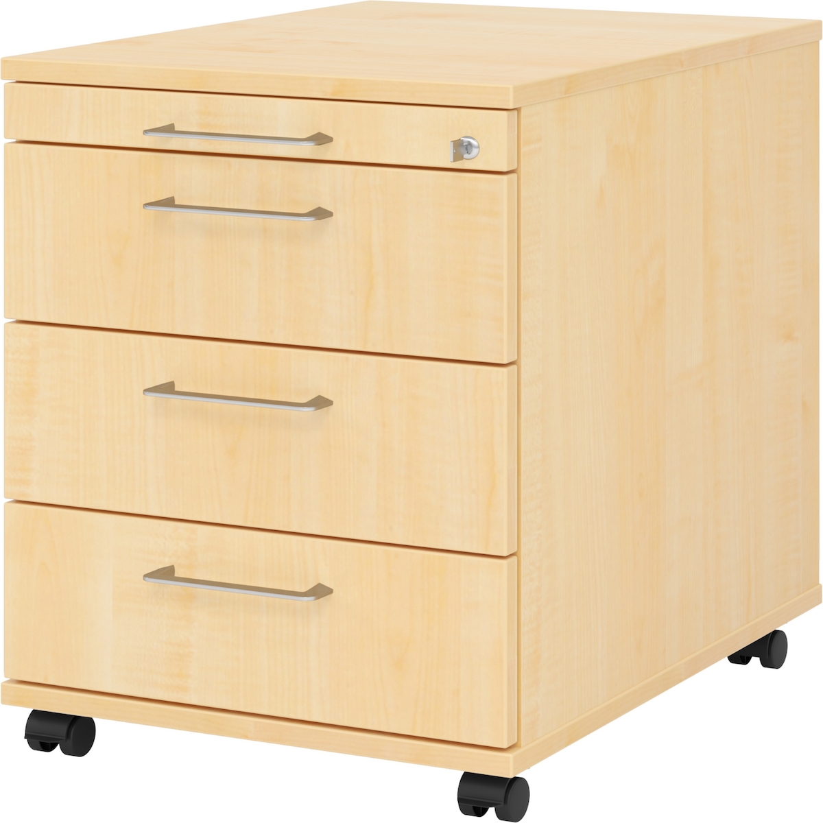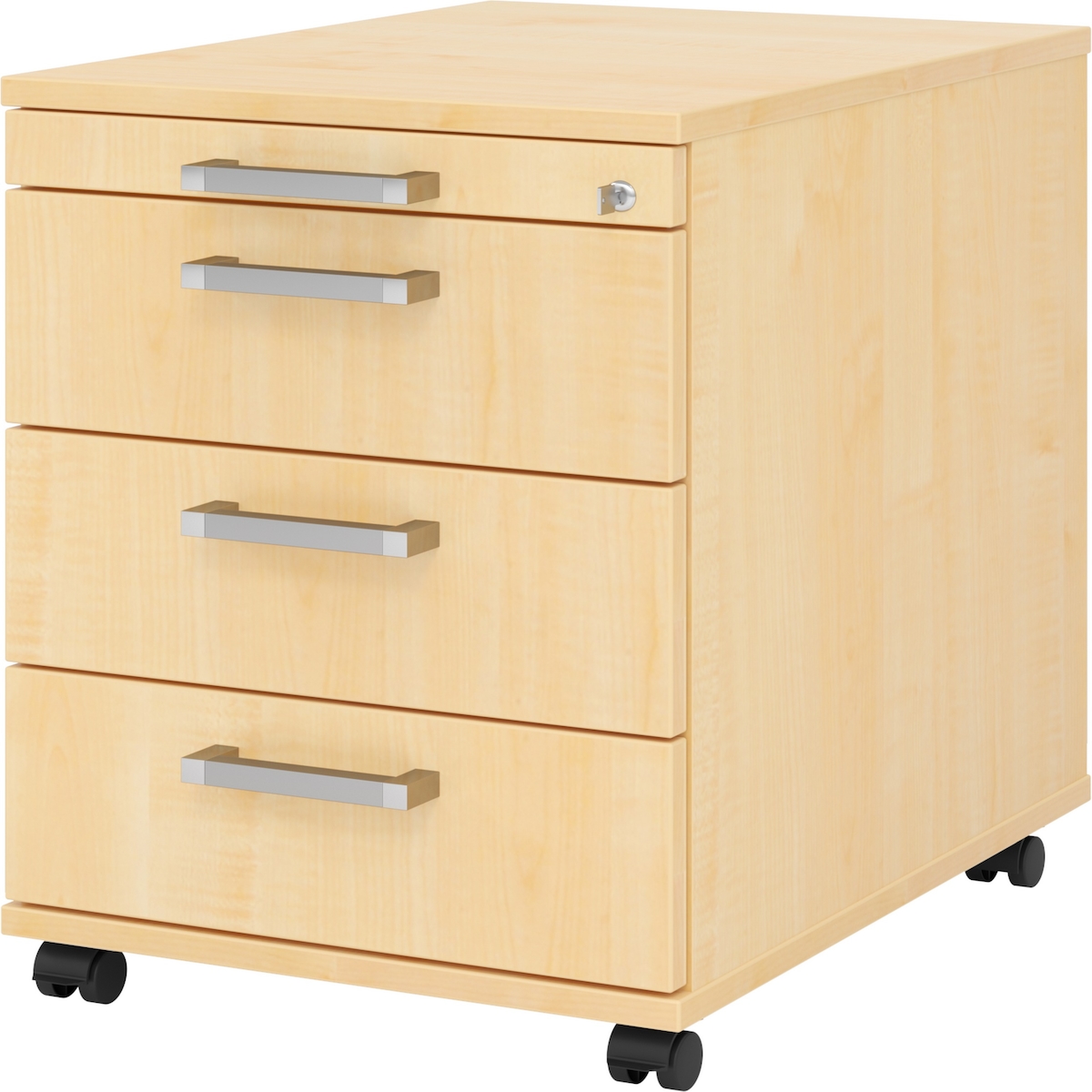 bümö basic Rollcontainer mit Schubladen, Container aus Holz in Ahorn - Rollwagen für's Büro als Schreibtisch Unterschrank, Bürocontainer od.